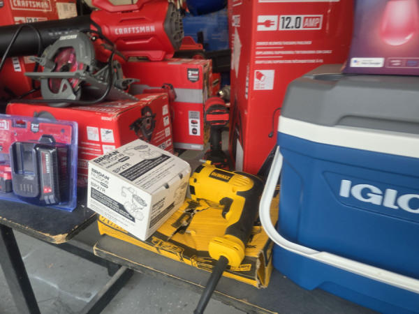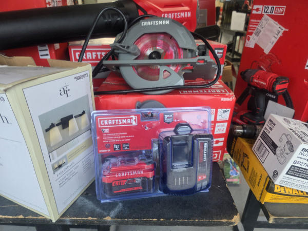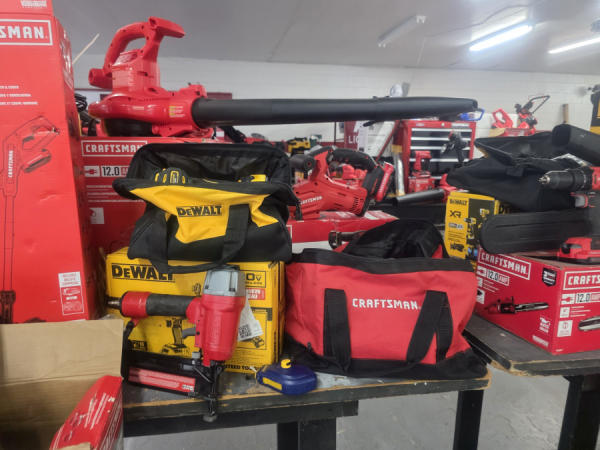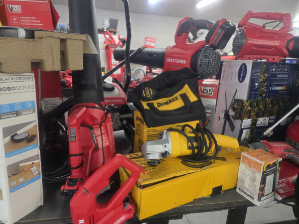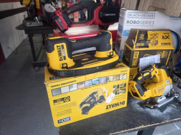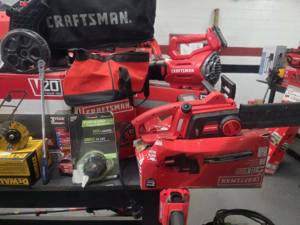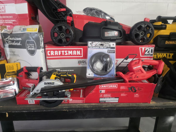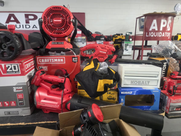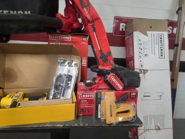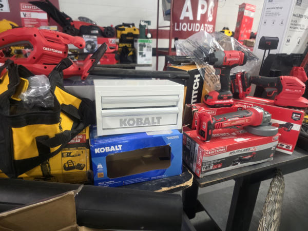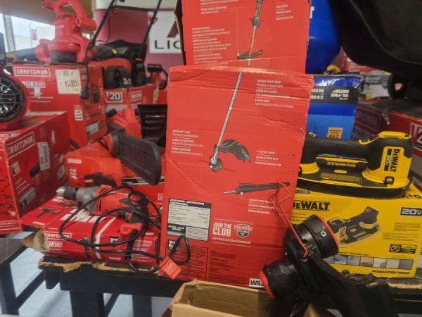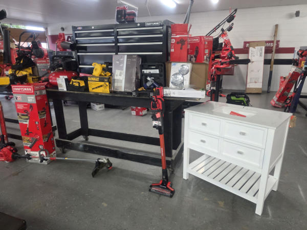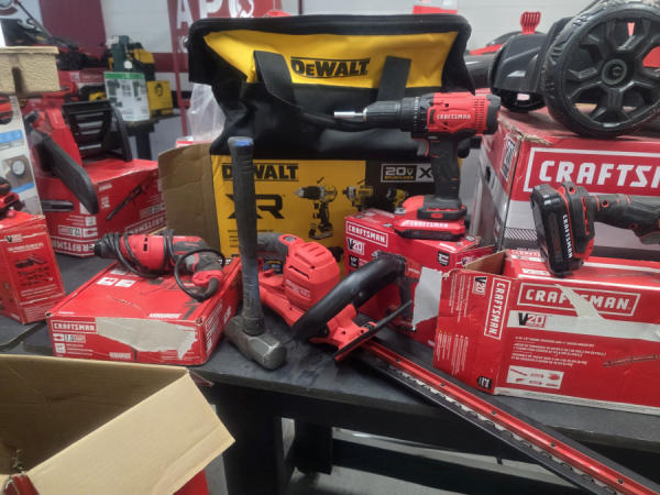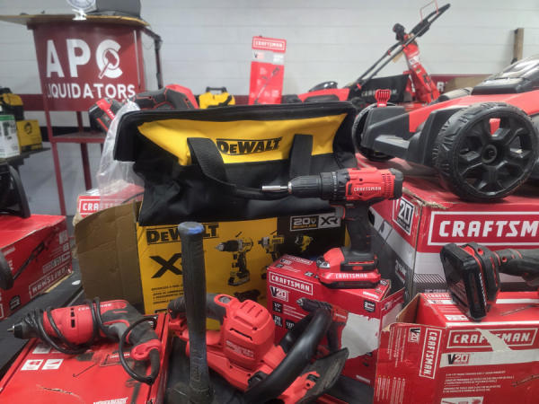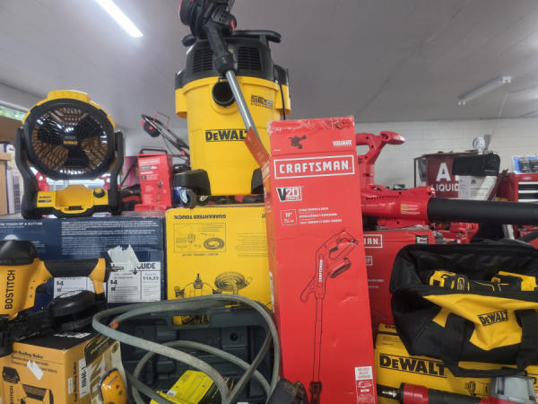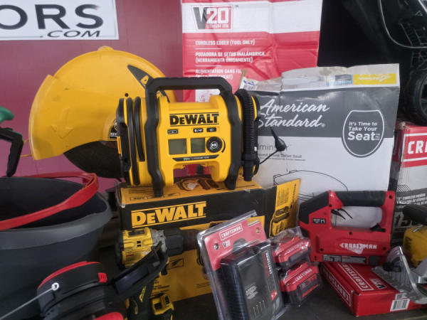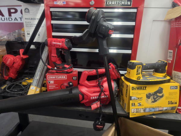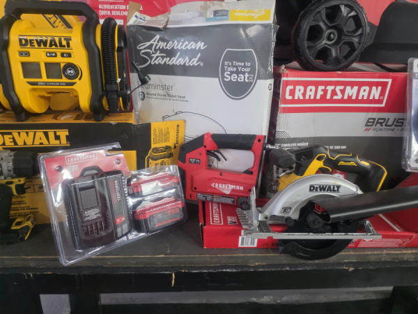 We've got a great load of USA tools for you this week! Dewalt, Craftsman, Kobalt, Bostitch and more! Expect to see Dewalt Table Saws, Dewalt Chop Saws, Dewalt Fans, all types of cordless drill sets, Dewalt Grease Guns, Dewalt Suction Holders, Reciprocating Saws, Kobalt Air Compressors, Kobalt Hedge Trimmers, Ego Trimmers, Craftsman 40v Lawn Mowers, Crafsman Drill Sets, All types of really nice Craftsman and Kobalt Tool Boxes, Chainsaws, Blowers, Weedeaters, Gas Weedeaters, Gas Chainsaws, Hedge Trimmers, Pole Saws, Faucet Sets, Really Nice Vanities, and tons more tools and hardware!