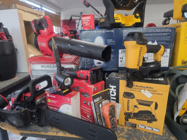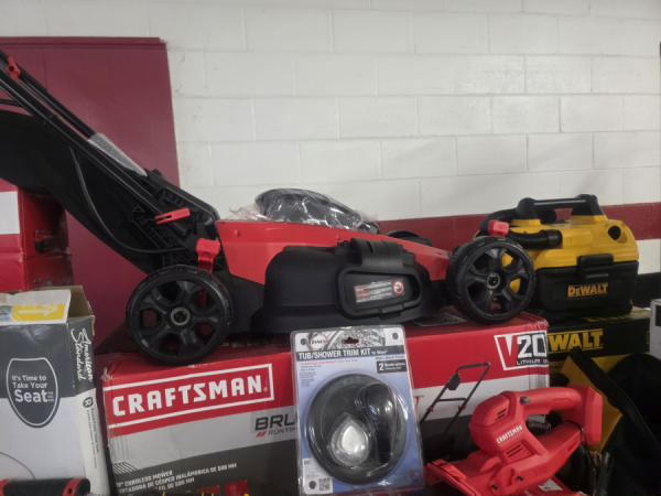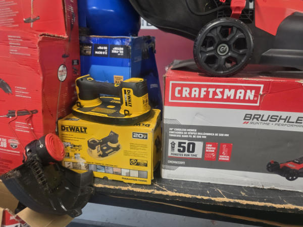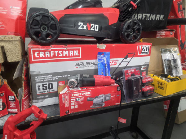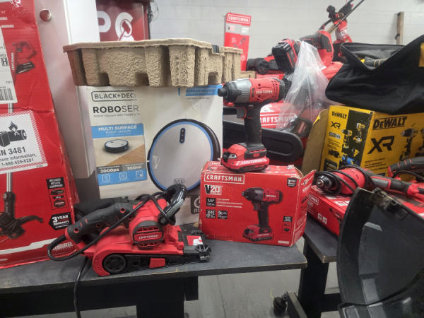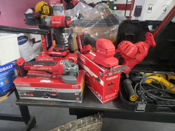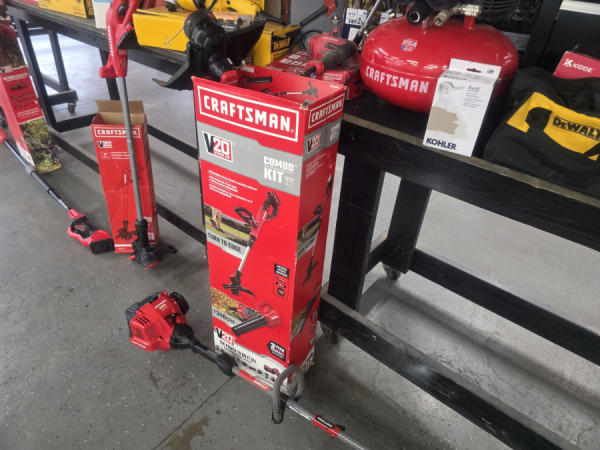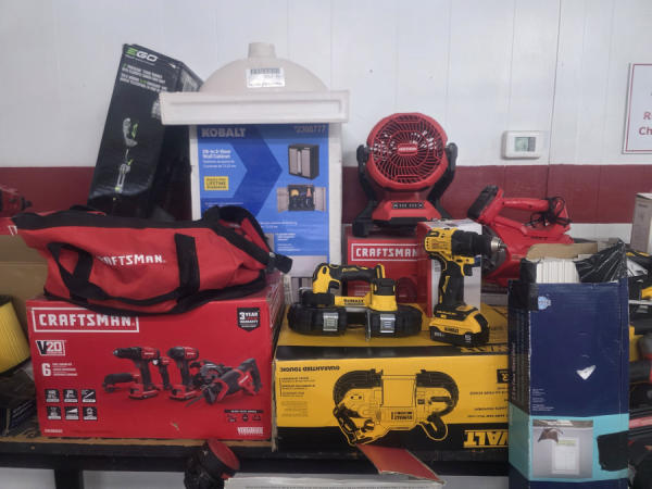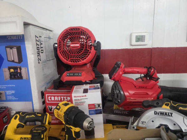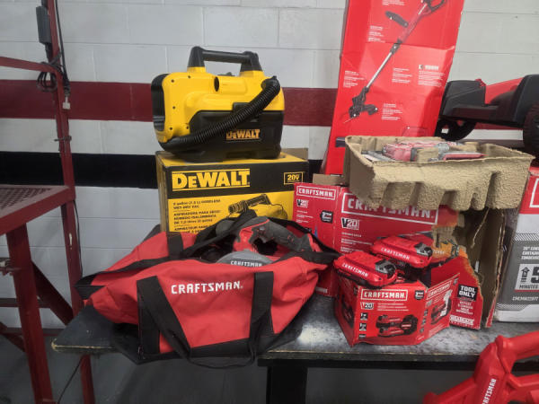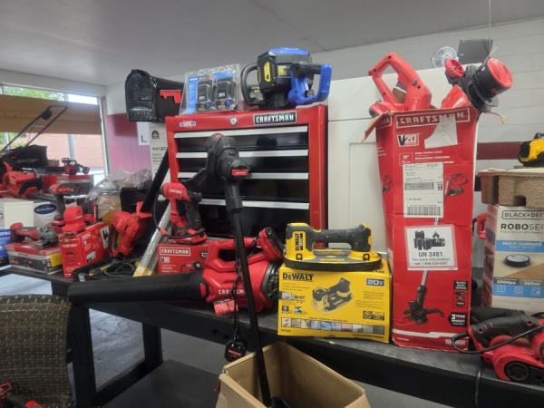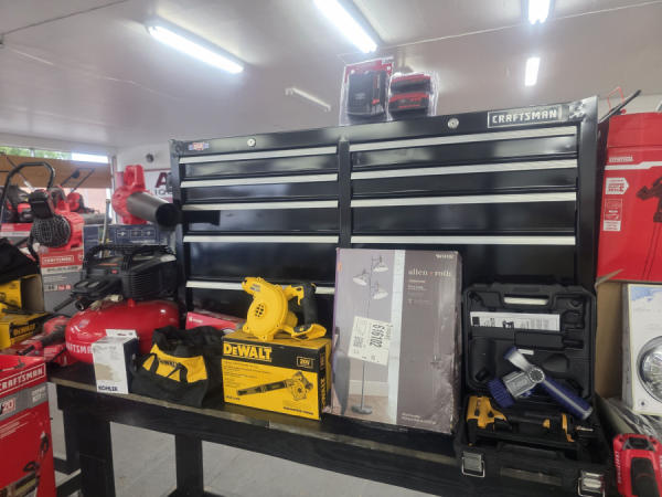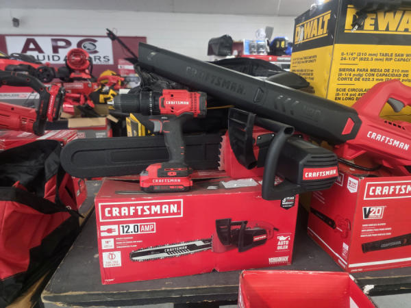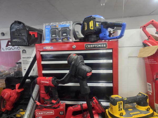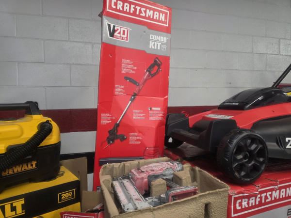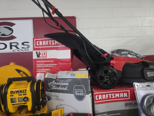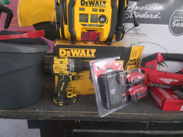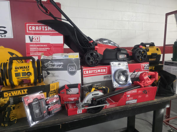 We've got a great load of USA tools for you this week! Dewalt, Craftsman, Kobalt, Bostitch and more! Expect to see Dewalt Table Saws, Dewalt Chop Saws, Dewalt Fans, all types of cordless drill sets, Dewalt Grease Guns, Dewalt Suction Holders, Reciprocating Saws, Kobalt Air Compressors, Kobalt Hedge Trimmers, Ego Trimmers, Craftsman 40v Lawn Mowers, Crafsman Drill Sets, All types of really nice Craftsman and Kobalt Tool Boxes, Chainsaws, Blowers, Weedeaters, Gas Weedeaters, Gas Chainsaws, Hedge Trimmers, Pole Saws, Faucet Sets, Really Nice Vanities, and tons more tools and hardware!