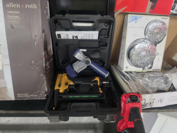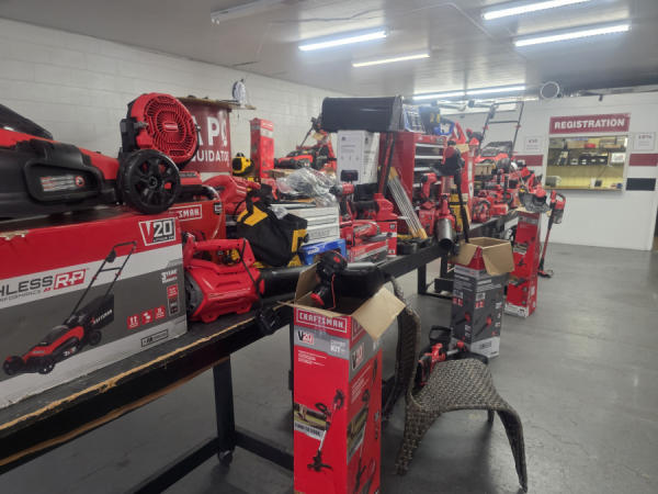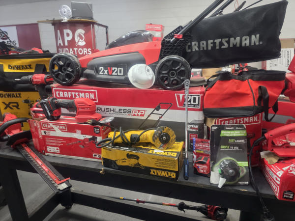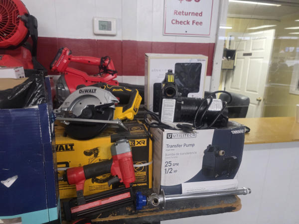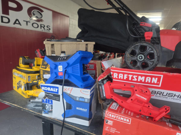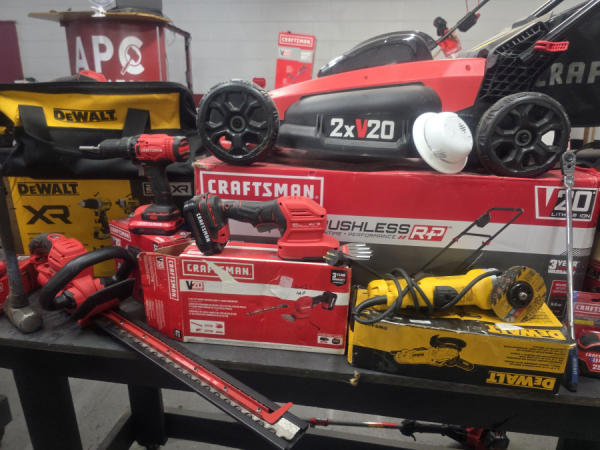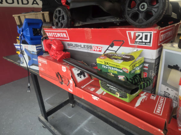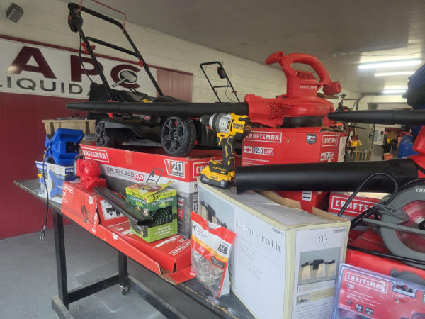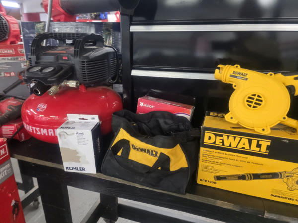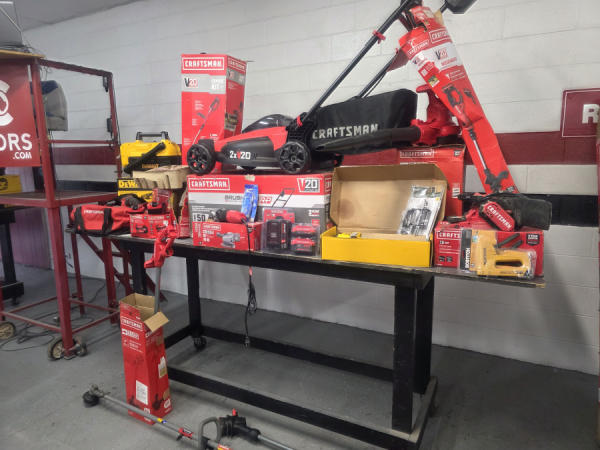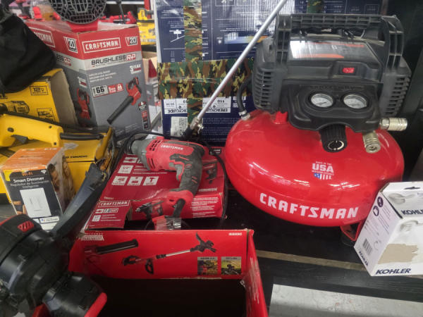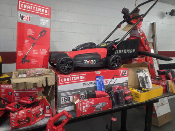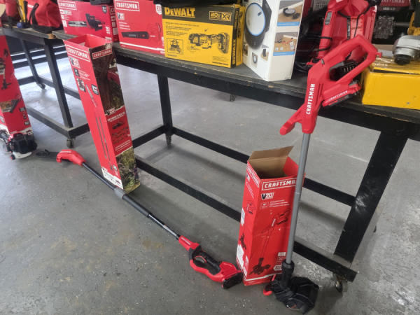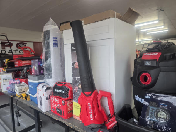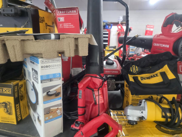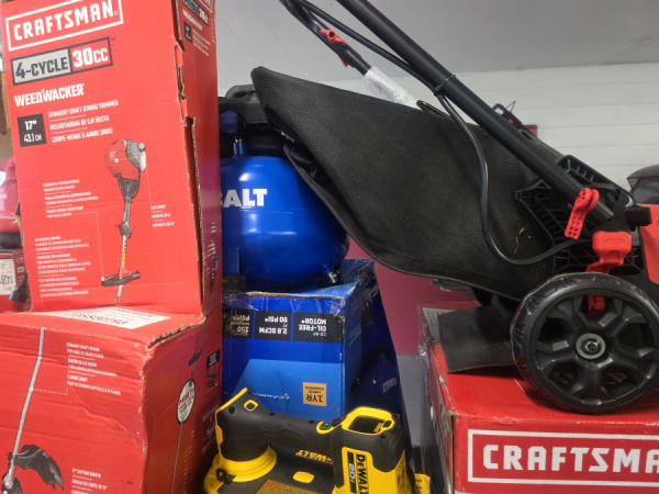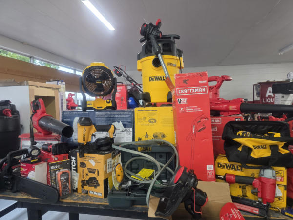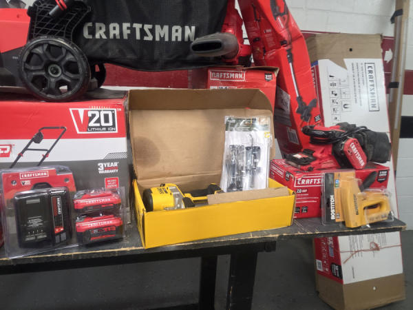 We've got a great load of USA tools for you this week! Dewalt, Craftsman, Kobalt, Bostitch and more! Expect to see Dewalt Table Saws, Dewalt Chop Saws, Dewalt Fans, all types of cordless drill sets, Dewalt Grease Guns, Dewalt Suction Holders, Reciprocating Saws, Kobalt Air Compressors, Kobalt Hedge Trimmers, Ego Trimmers, Craftsman 40v Lawn Mowers, Crafsman Drill Sets, All types of really nice Craftsman and Kobalt Tool Boxes, Chainsaws, Blowers, Weedeaters, Gas Weedeaters, Gas Chainsaws, Hedge Trimmers, Pole Saws, Faucet Sets, Really Nice Vanities, and tons more tools and hardware!