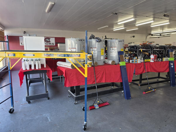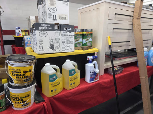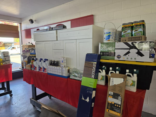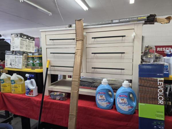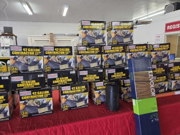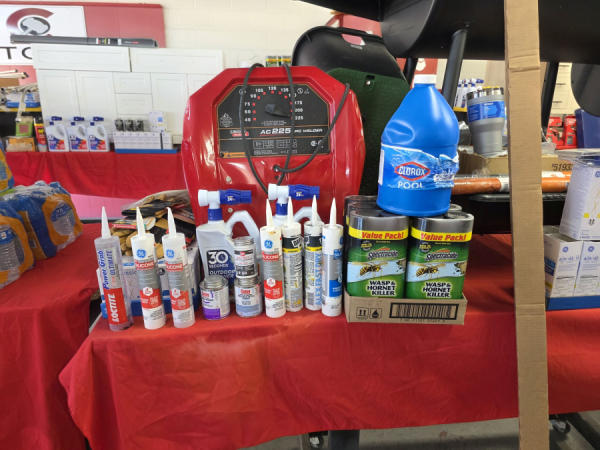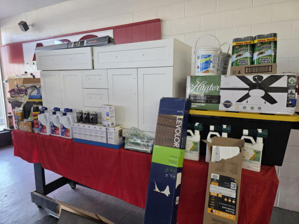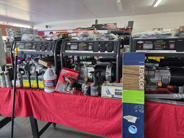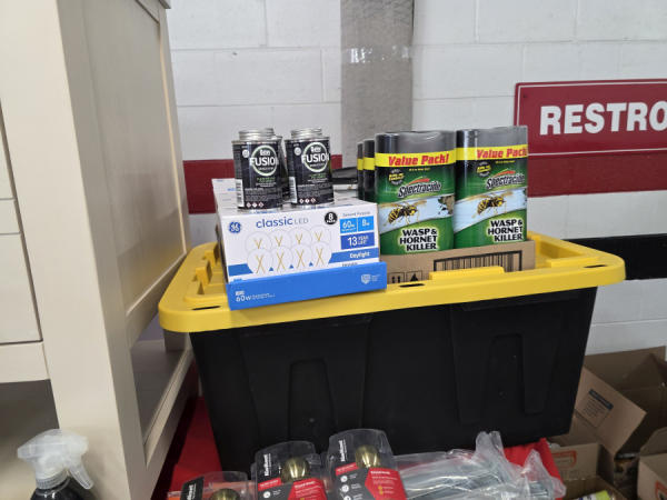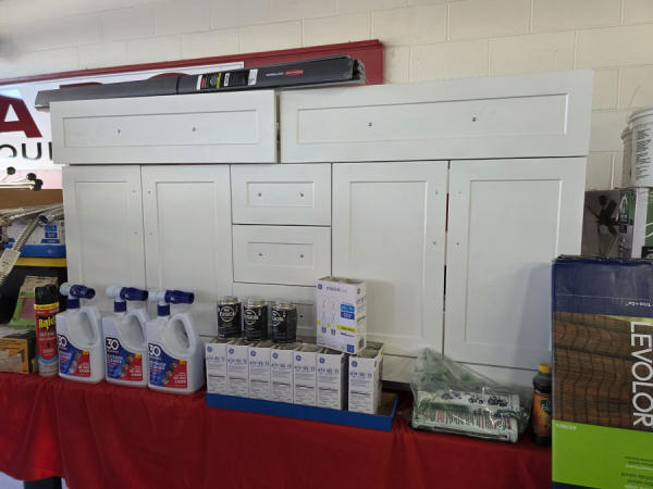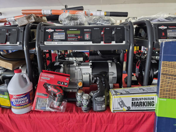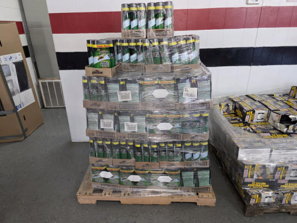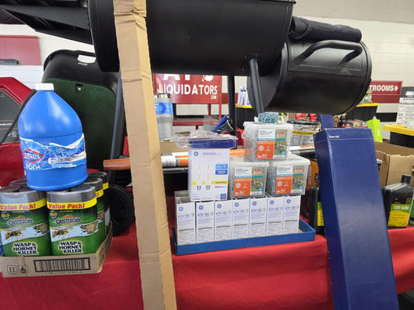 We have another FULL auction of brand new damaged case pack and pallet deals for this auction. We got in a whole truckload of warehouse damaged goods that includes brand new 8000 Watt Generators, 40 Gallon AO Smith Electric Low Boy Hot Water Heaters, Cases upon cases of contractor 55 gallon trash bags, Brand New Solid Wood Vanities with Granite Tops, Craftsman Ball Bearing American Eagle Roll Around Tool Box, New Cordless Vacuum, Lincoln Stick Welder, Ceiling Fans, Cases of Hornet and Wasp Spray, Cases of Insulated Gloves, All types of cleaning products, Marking Paint, Scaffolding, Cases of Hardware Items, Cases of Electrical Items, PVC Glue, Plumbing Fittings, Big Box lots of all types of spray paints and aerolsols, several pallets of 32pack water, pallet of flooring, pallet of hardware by the case, area rugs, folding tables, fertilizers, weed killer, LED light bulbs, and tons more stuff. IT WILL BE A BUYER'S CHOICE AUCTION. The entire truckload is at the auction and it will all be sold Monday Night! Please bring your truck and trailer!