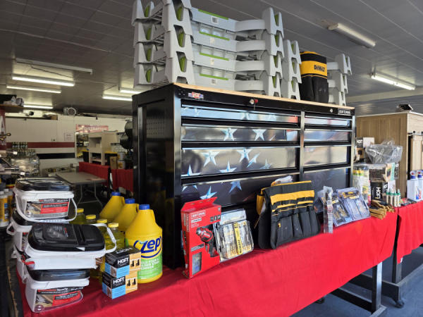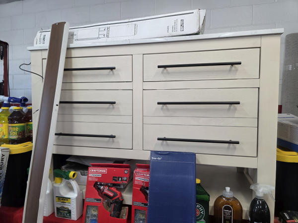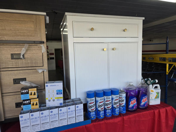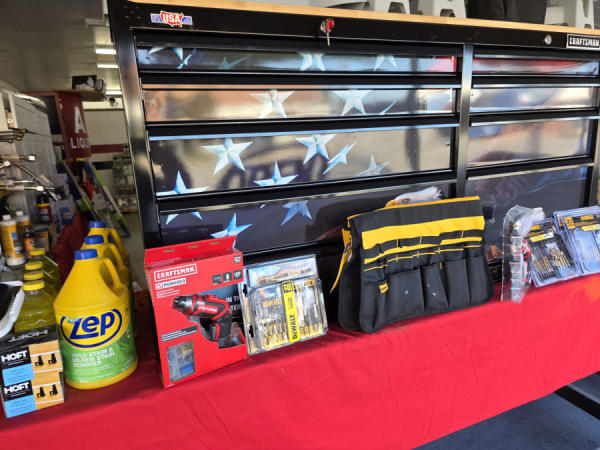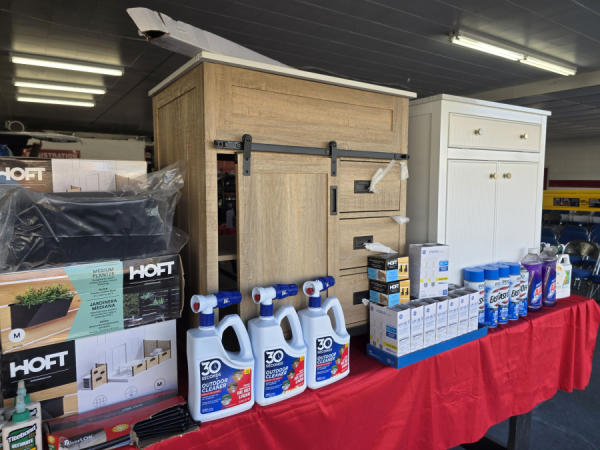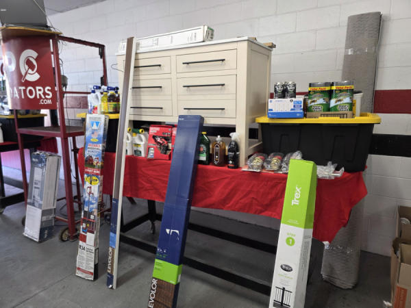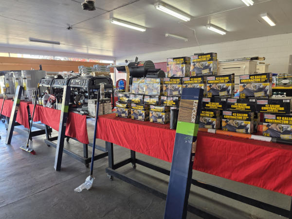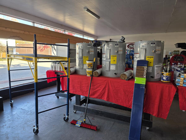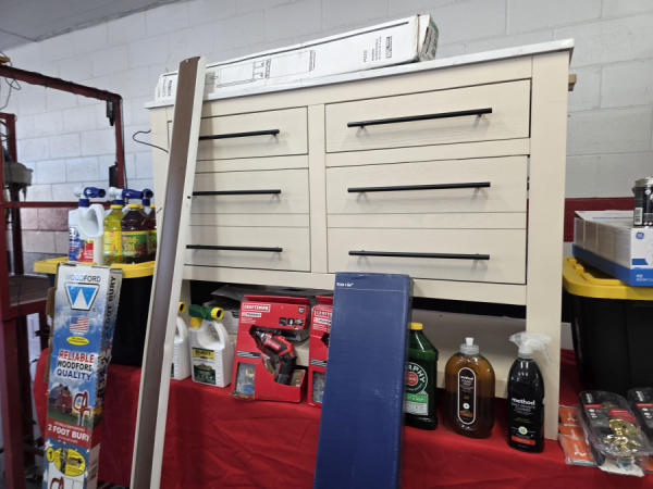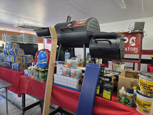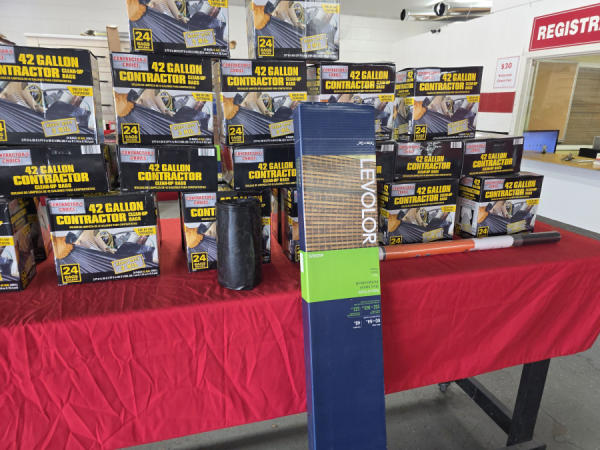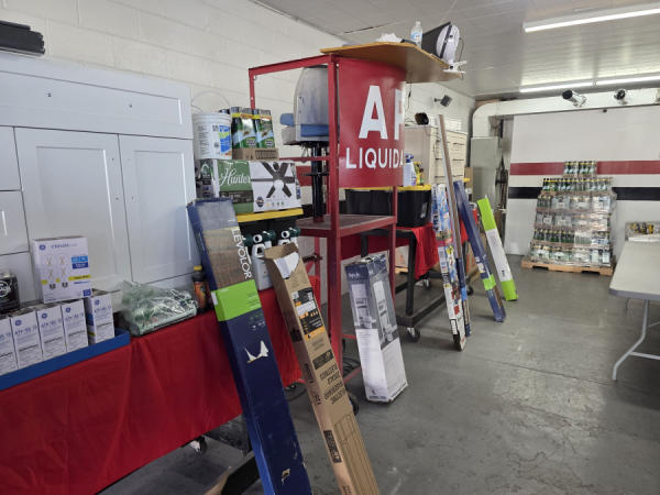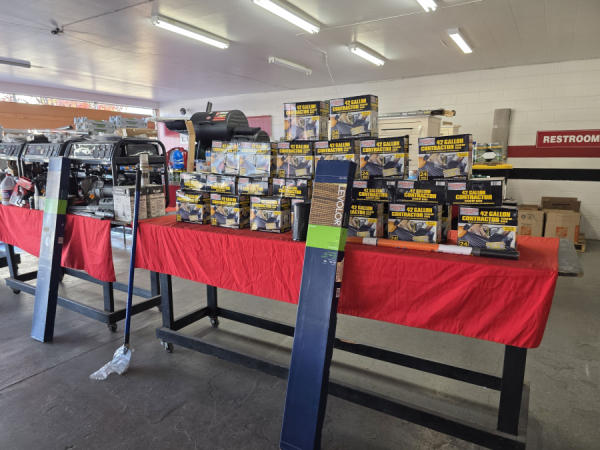 We have another FULL auction of brand new damaged case pack and pallet deals for this auction. We got in a whole truckload of warehouse damaged goods that includes brand new 8000 Watt Generators, 40 Gallon AO Smith Electric Low Boy Hot Water Heaters, Cases upon cases of contractor 55 gallon trash bags, Brand New Solid Wood Vanities with Granite Tops, Craftsman Ball Bearing American Eagle Roll Around Tool Box, New Cordless Vacuum, Lincoln Stick Welder, Ceiling Fans, Cases of Hornet and Wasp Spray, Cases of Insulated Gloves, All types of cleaning products, Marking Paint, Scaffolding, Cases of Hardware Items, Cases of Electrical Items, PVC Glue, Plumbing Fittings, Big Box lots of all types of spray paints and aerolsols, several pallets of 32pack water, pallet of flooring, pallet of hardware by the case, area rugs, folding tables, fertilizers, weed killer, LED light bulbs, and tons more stuff. IT WILL BE A BUYER'S CHOICE AUCTION. The entire truckload is at the auction and it will all be sold Monday Night! Please bring your truck and trailer!