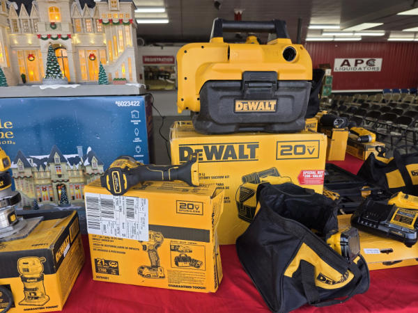 THIS IS OUR CHRISTMAS TOOL AUCTION TO END 2025! We have an entire auction house full of USA DEWALT TOOLS! If you can name it, we've got it! We're still adding to the auction all week, so expect a great selection of DEWALT Tools! Load of Cordless and Corded Tools, Extra Batteries, All types of Nail Guns, Expanders, Grease Guns, Saws, Drills, Sanders, Blowers, and anything black and yellow you could ask for!