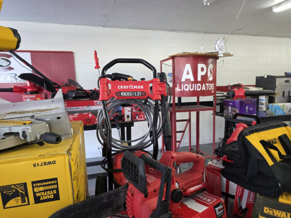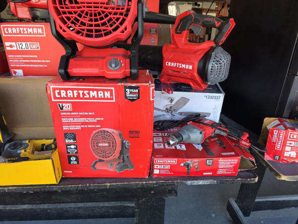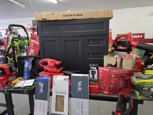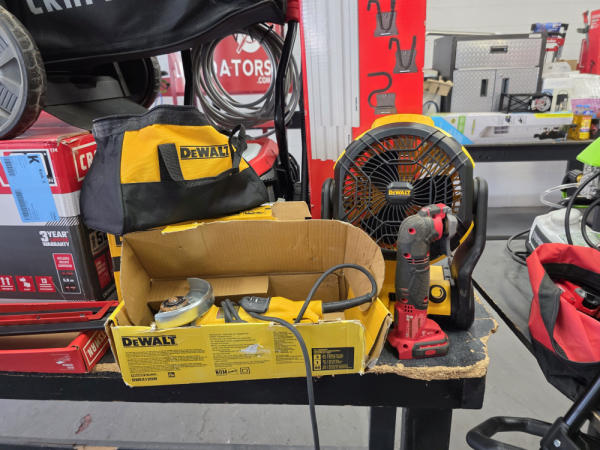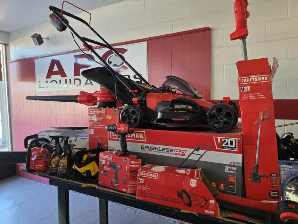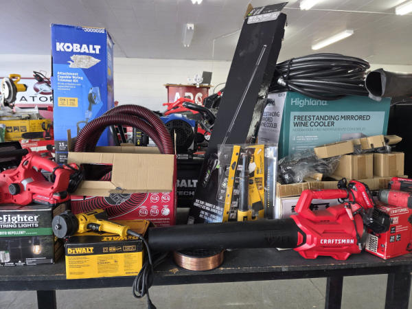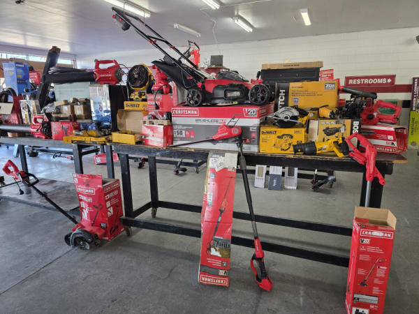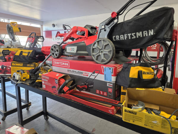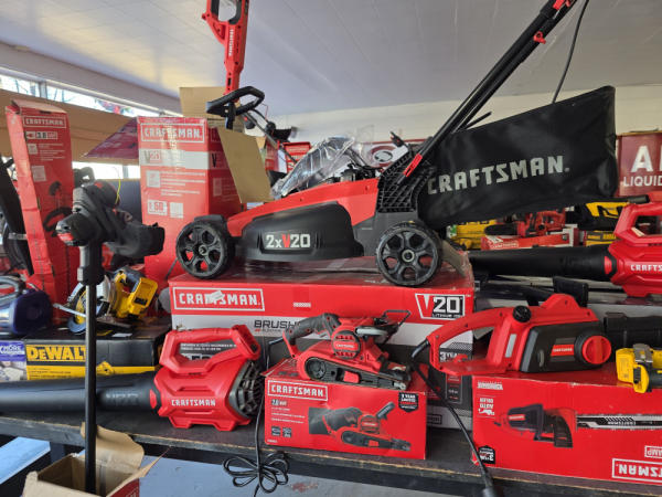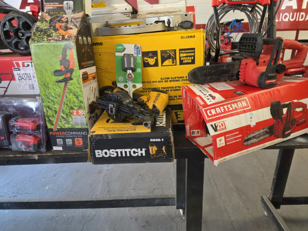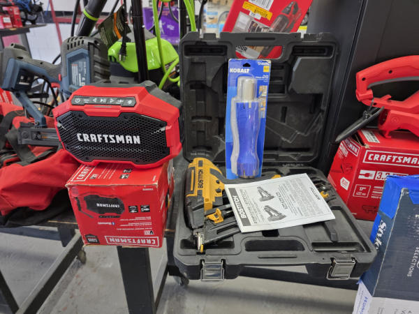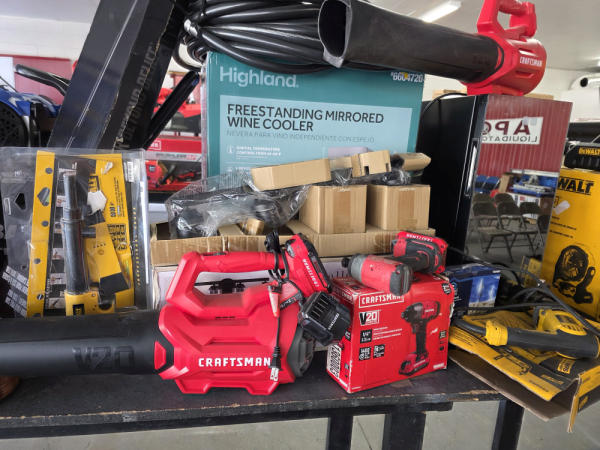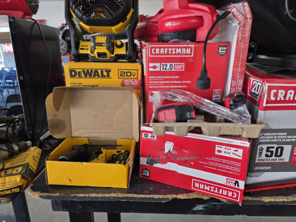 Just got in a great load of USA tools and the entire truckload is here on the auction! All name brand tools! Expect to see Air compressors, Compound Miter Saws, Shop Vacs, Cordless Blowers, Gas Chainsaws, Lawn Mowers, Cordless Tillers, Cordless Edgers, Cordless Chainsaws, Hedge Trimmers, Cordless Drill Sets, Routers, All types of Dewalt and Craftsman Cordless Fans, Cordless Shop Radio, Cordless Vacuums, Cordless Nail Guns, Roofing Nailers, Hardwood Flooring Nailers, Garden Hoses, Weedeaters, and even a Wine Cooler! We even got Vanity Cabinets for your bathrooms, faucets, and more!