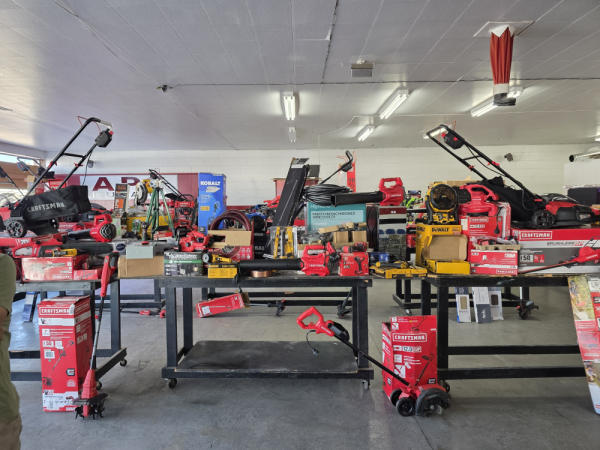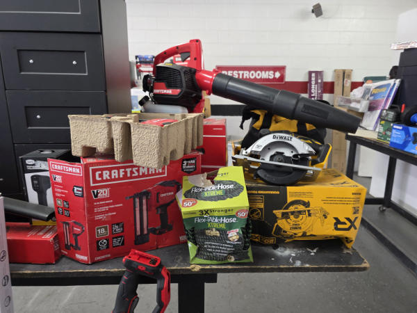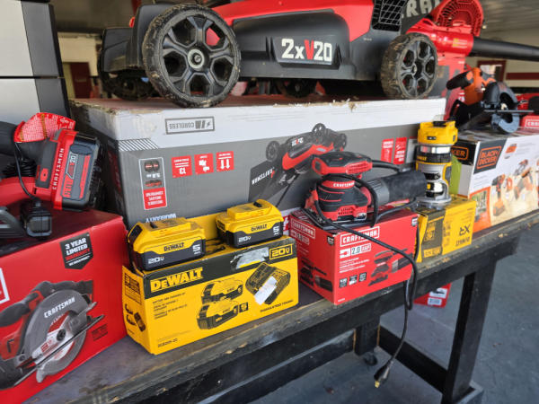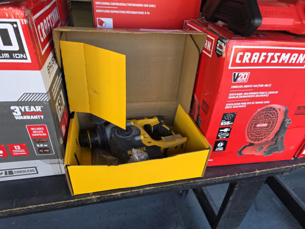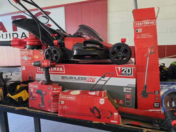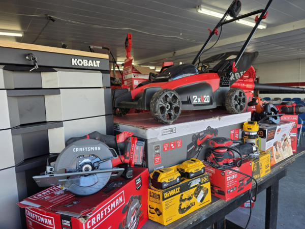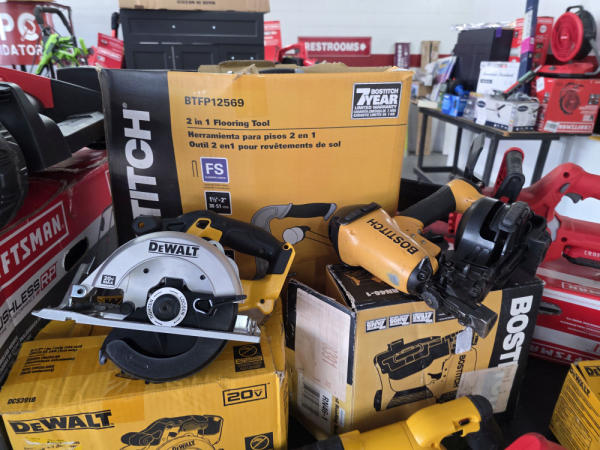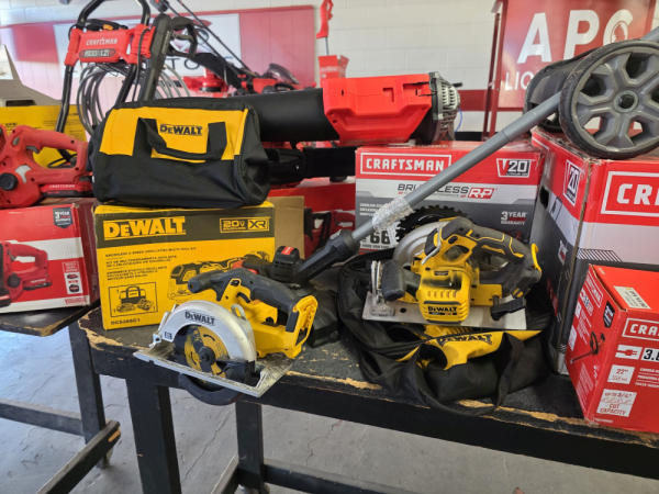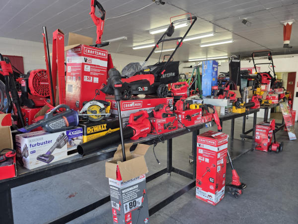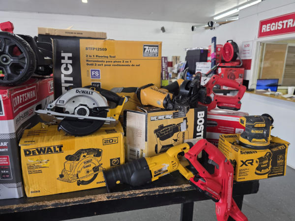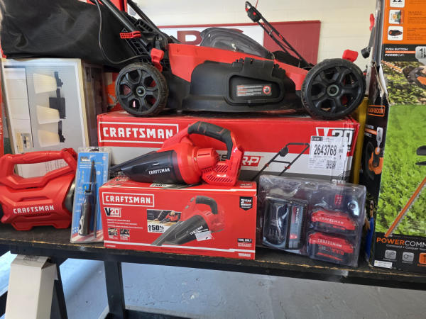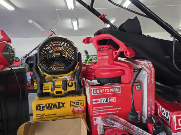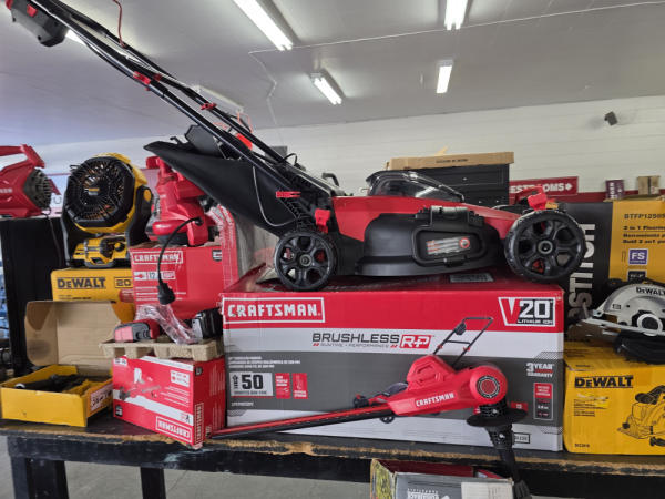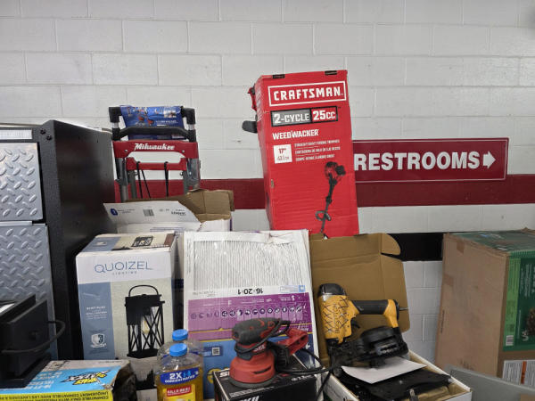 Just got in a great load of USA tools and the entire truckload is here on the auction! All name brand tools! Expect to see Air compressors, Compound Miter Saws, Shop Vacs, Cordless Blowers, Gas Chainsaws, Lawn Mowers, Cordless Tillers, Cordless Edgers, Cordless Chainsaws, Hedge Trimmers, Cordless Drill Sets, Routers, All types of Dewalt and Craftsman Cordless Fans, Cordless Shop Radio, Cordless Vacuums, Cordless Nail Guns, Roofing Nailers, Hardwood Flooring Nailers, Garden Hoses, Weedeaters, and even a Wine Cooler! We even got Vanity Cabinets for your bathrooms, faucets, and more!