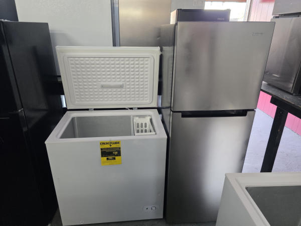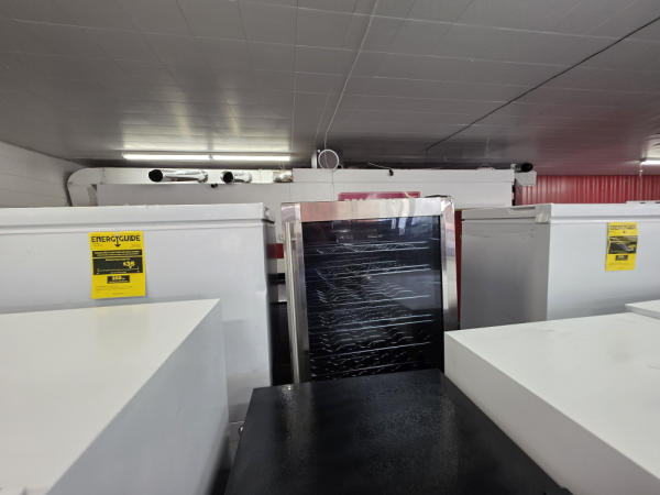 This week we are selling the entire Truckload of Appliances at our auction. Please take a look at all the pictures. This is different from our normal appliance auction. We have French Door Fridges, Bottom Freezer Fridges, Top Freezer Fridges, Apartment or Shop Size Fridges, Stainless Steel, Black, and White Fridges, Dorm Size Fridges, Under the counter Fridges, even some nostalgic red fridges. We've got almost 20 deep freezers including small chest, medium chest, small upright that convert from fridge to freezer, and large upright freezers. We've got a super nice SPEED QUEEN washing machine, Commercial Stainless Dishwasher, wine coolers, 50 & 80 gallon Rheem Hybrid Proterra Super Efficient Water Heaters, several window AC units of all sizes, We even have several Hot/Cold Water Dispensers. Almost every single appliance is brand new scratch and dent, all working, 90% still with the stickers and tags, unless we removed them. It's a new program, and I hope you can be here to help us liquidate them all Monday night!