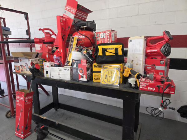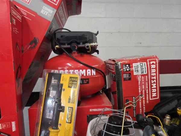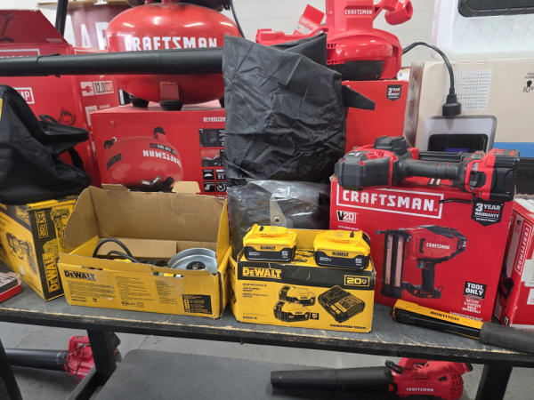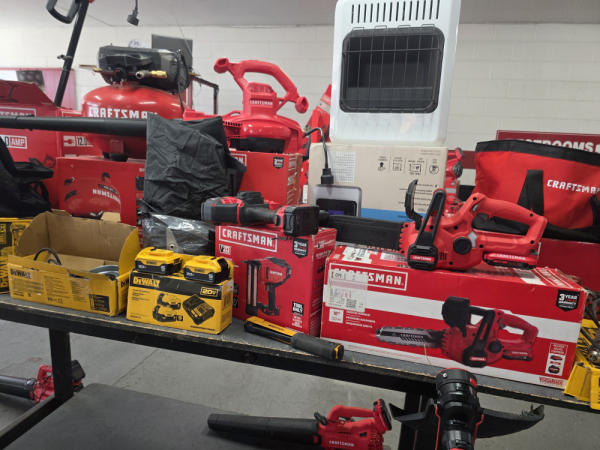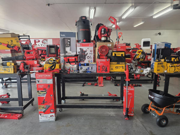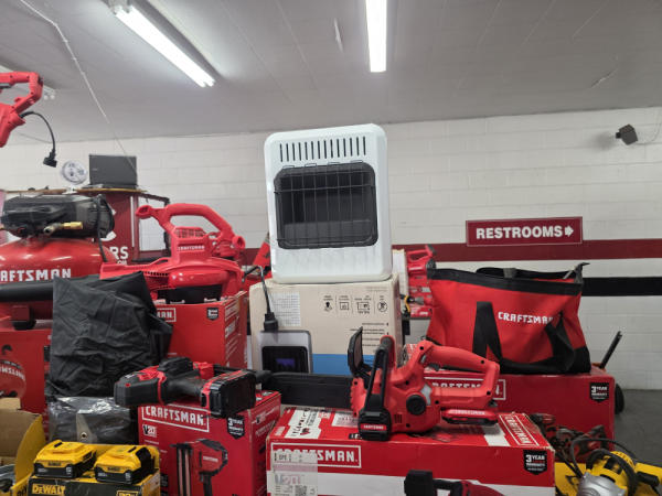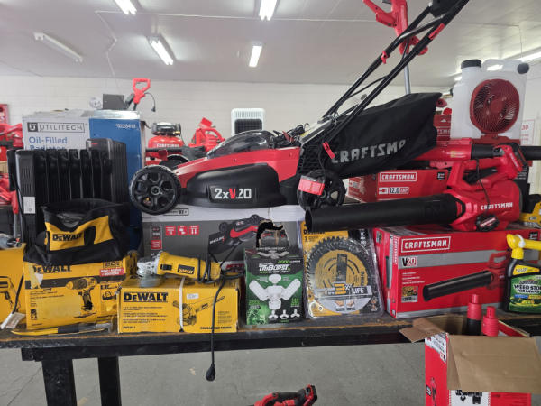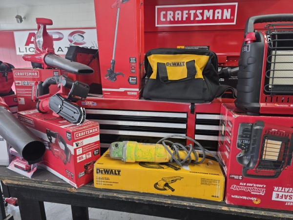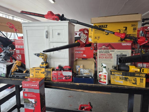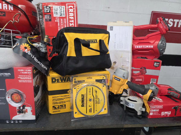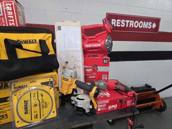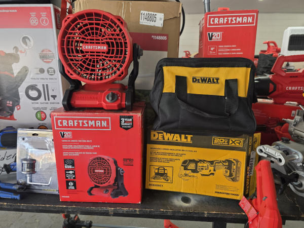 Huge Auction of USA Tools including Dewalt, Craftsman, Kobalt, Bostitch, Agrifab, Black N Decker, and more! Air Compressors, Compound Miter Saws, Lawn Mowers, Weedeater, Chainsaws, Blowers, Hedge Trimmers, Backpack Blowers, Nail Guns, Cordless Caulk Guns, Batter Powered Pruners, Hammer Drill Sets, Rotarty Hammer Drills, All types of Cordless Dewalt Tools including drill sets, blower sets, deck guns, oscillating tools, reciprocating saws, pole saws, Big Craftsman Tool Box, Solid Wood Vanities, Stainless Patio Heaters, Dual Fuel Wall Heaters, Shop Heaters, Ceiling Fans, Shop Vacs, Buddy Heaters, Battery Powered Fans, All types of Hand Tools, Plier Sets, Small Socket Sets, Milwaukee Hand Trucks, Circular Saw Blades, Circular Saws, Faucet Sets, Huge Yard Sweeper, Big Pull Behind Spreader, and tons more stuff! It's a REALLY NICE USA TOOL AUCTION!