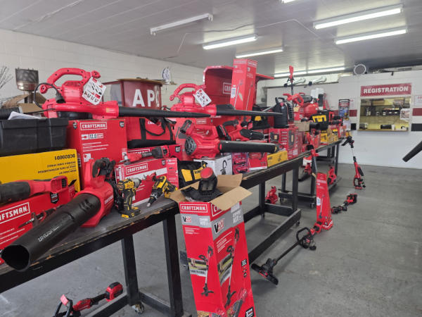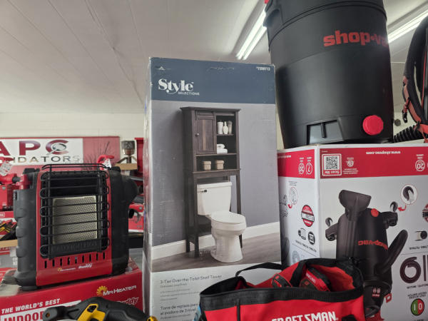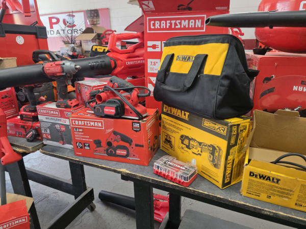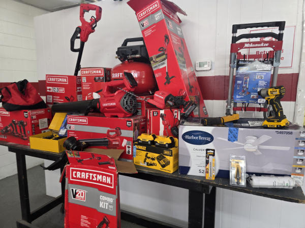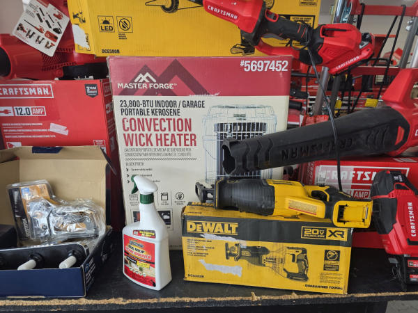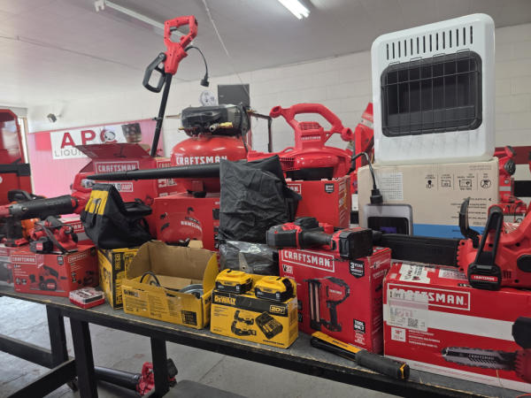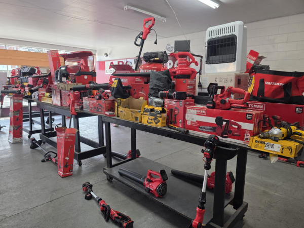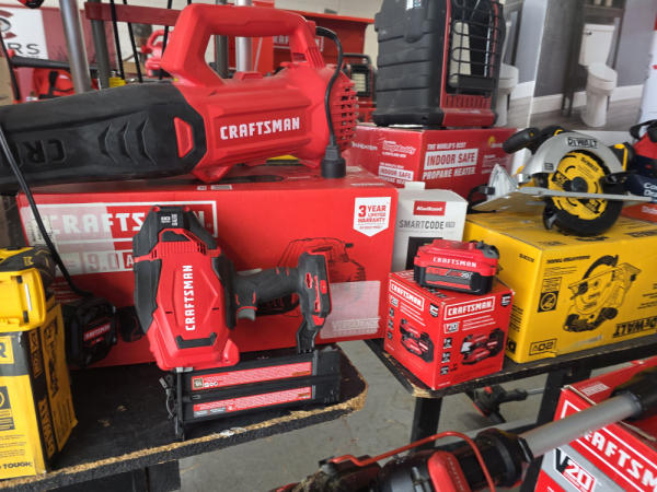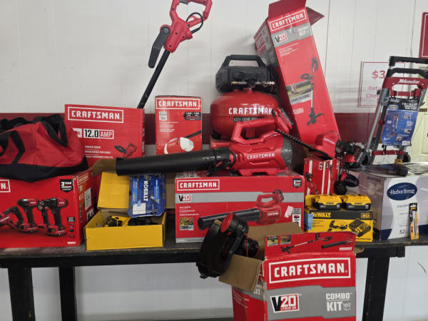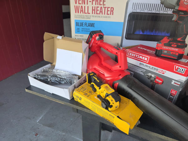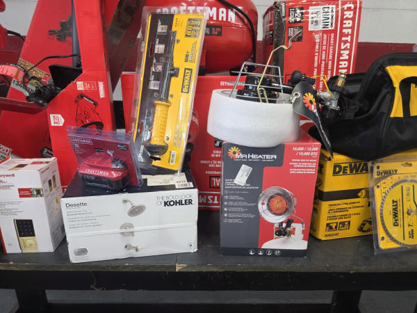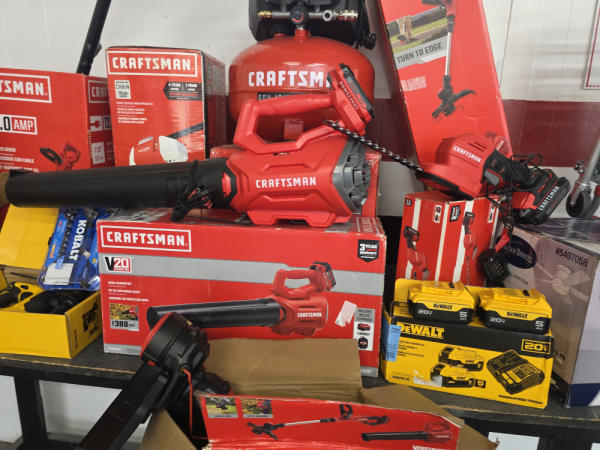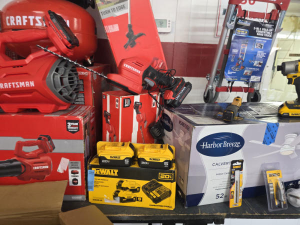 Huge Auction of USA Tools including Dewalt, Craftsman, Kobalt, Bostitch, Agrifab, Black N Decker, and more! Air Compressors, Compound Miter Saws, Lawn Mowers, Weedeater, Chainsaws, Blowers, Hedge Trimmers, Backpack Blowers, Nail Guns, Cordless Caulk Guns, Batter Powered Pruners, Hammer Drill Sets, Rotarty Hammer Drills, All types of Cordless Dewalt Tools including drill sets, blower sets, deck guns, oscillating tools, reciprocating saws, pole saws, Big Craftsman Tool Box, Solid Wood Vanities, Stainless Patio Heaters, Dual Fuel Wall Heaters, Shop Heaters, Ceiling Fans, Shop Vacs, Buddy Heaters, Battery Powered Fans, All types of Hand Tools, Plier Sets, Small Socket Sets, Milwaukee Hand Trucks, Circular Saw Blades, Circular Saws, Faucet Sets, Huge Yard Sweeper, Big Pull Behind Spreader, and tons more stuff! It's a REALLY NICE USA TOOL AUCTION!