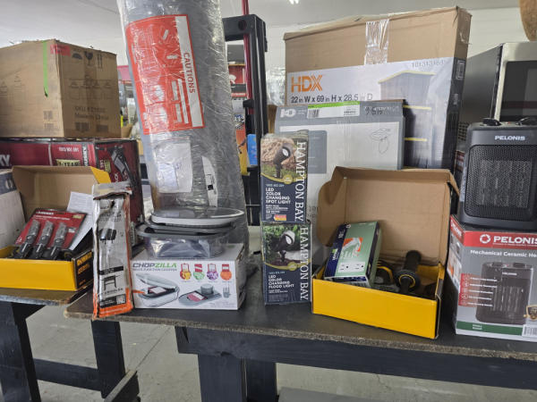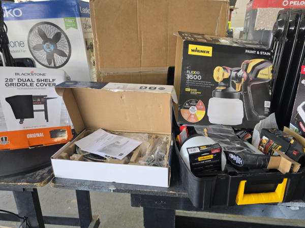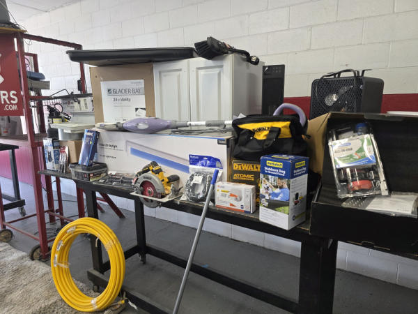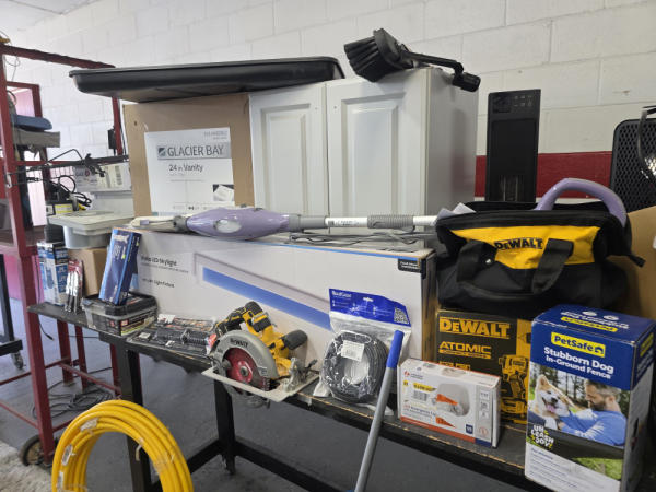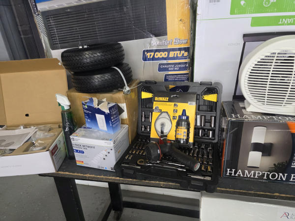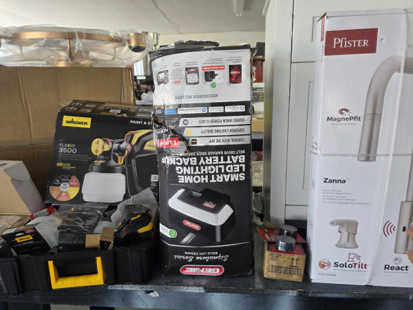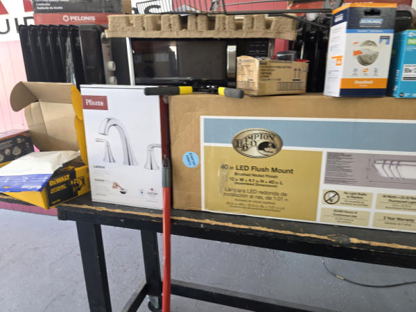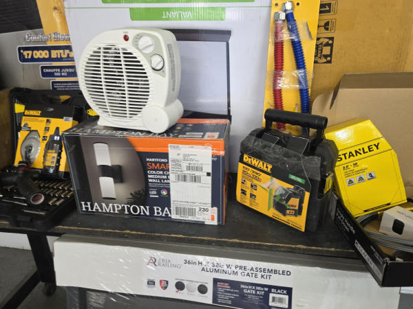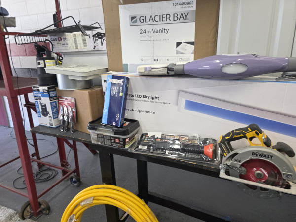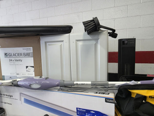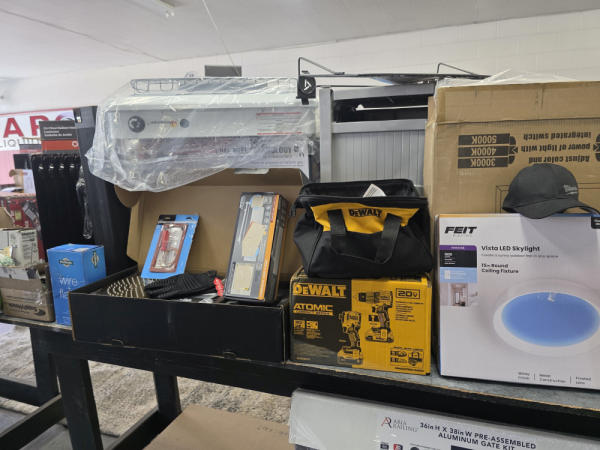 We have a huge load of the NEW Home Improvement supply that is packed with Dewalt Tools, Milwaukee Tools, Lincoln Welder, Rigid Shop Vac, Gas Wall Heaters, Solid Wood Vanities, Huge Christmas Trees, Whole House Air Purifiers, Super Nice Bathroom Shower and Tub Faucets, Vanity Faucets, Kitchen Sinks, Kitchen Faucets, Ceiling Fans, Light Fixtures, Chandeliers, High End Camera Door Locks, Toro Self Propelled Gas Lawn Mower, Air Movers, All types of Microwaves, Sump Pumps, Fans, Shop Heaters, Paint Sprayers, Mini Freezer, Patio Chairs, Patio Rug, Charcoal Grill, Hand Trucks, Brooms, Mops, and tons more!
