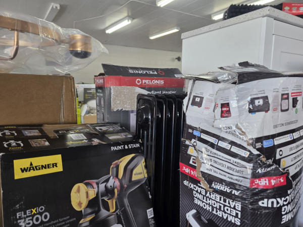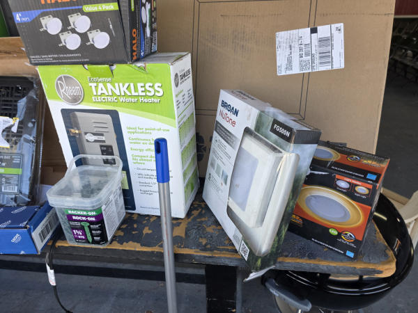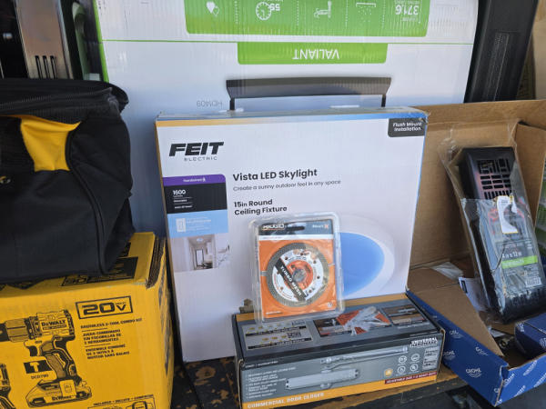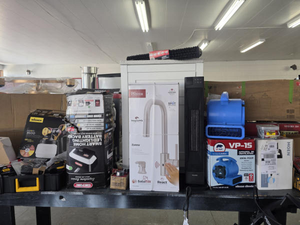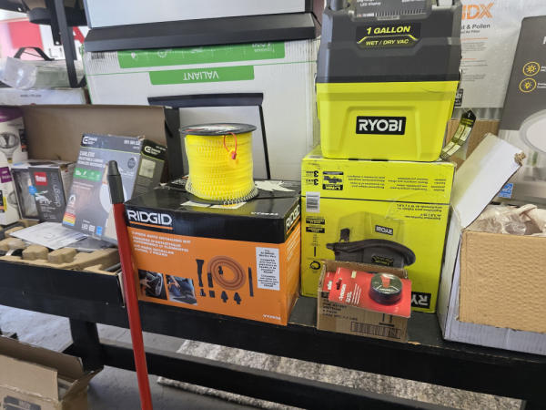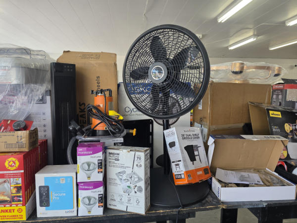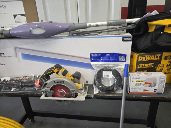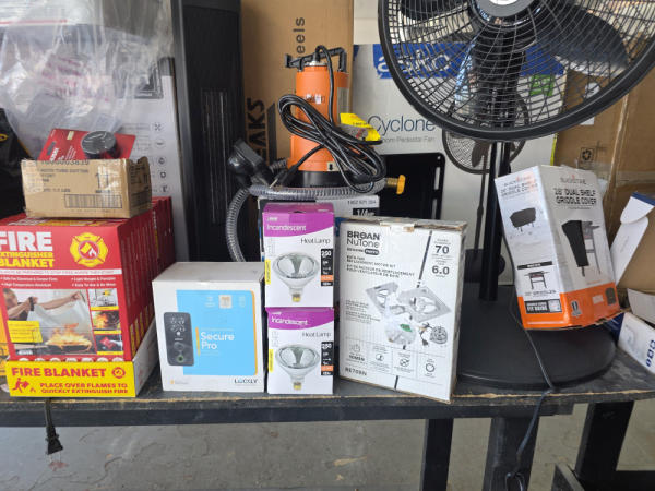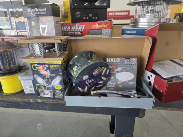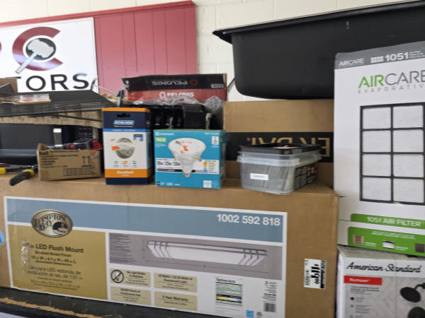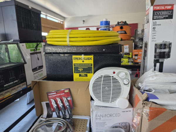 We have a huge load of the NEW Home Improvement supply that is packed with Dewalt Tools, Milwaukee Tools, Lincoln Welder, Rigid Shop Vac, Gas Wall Heaters, Solid Wood Vanities, Huge Christmas Trees, Whole House Air Purifiers, Super Nice Bathroom Shower and Tub Faucets, Vanity Faucets, Kitchen Sinks, Kitchen Faucets, Ceiling Fans, Light Fixtures, Chandeliers, High End Camera Door Locks, Toro Self Propelled Gas Lawn Mower, Air Movers, All types of Microwaves, Sump Pumps, Fans, Shop Heaters, Paint Sprayers, Mini Freezer, Patio Chairs, Patio Rug, Charcoal Grill, Hand Trucks, Brooms, Mops, and tons more!