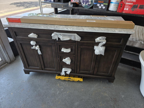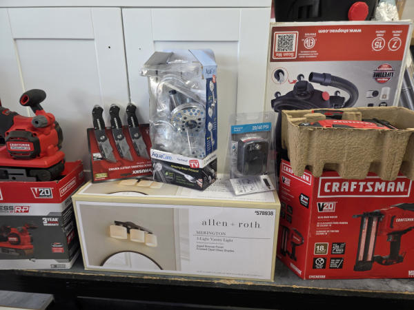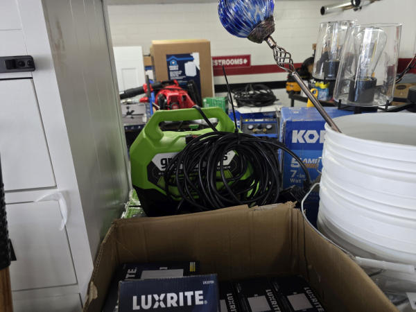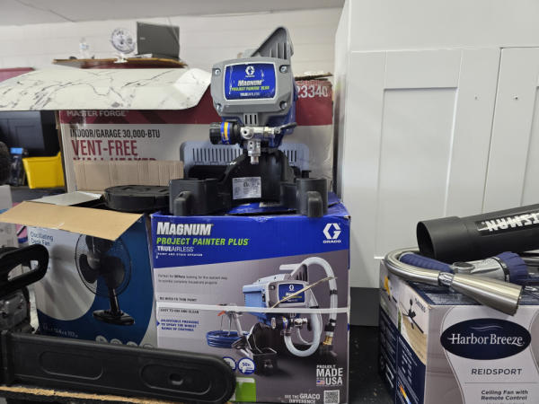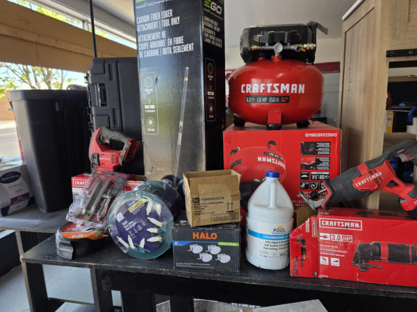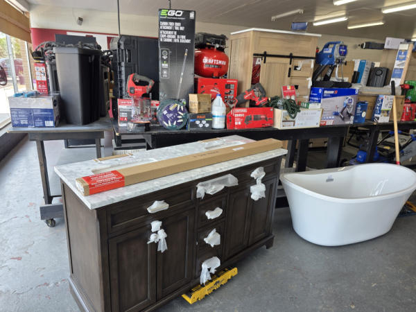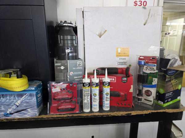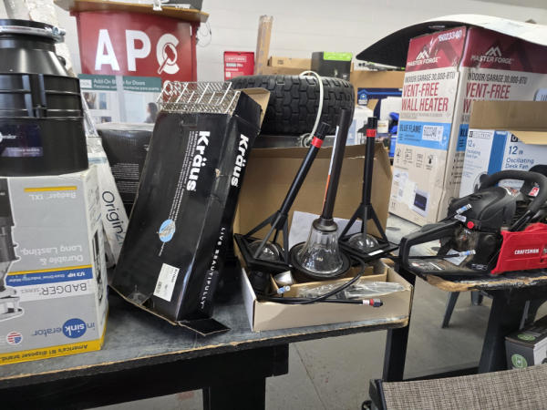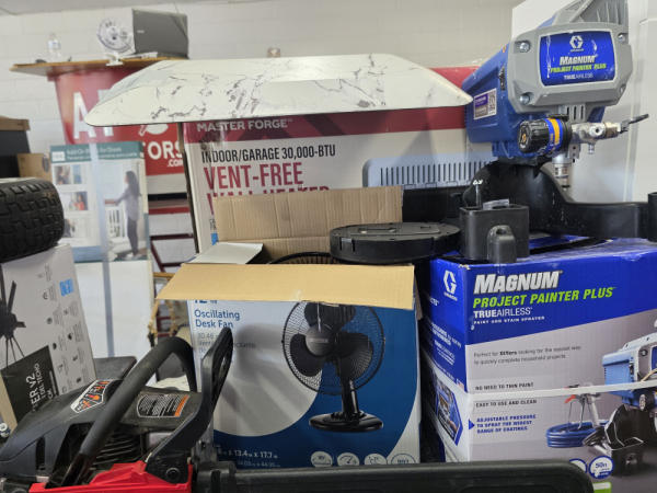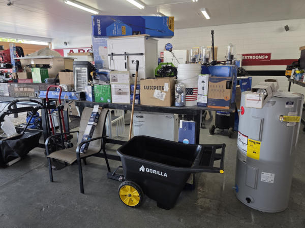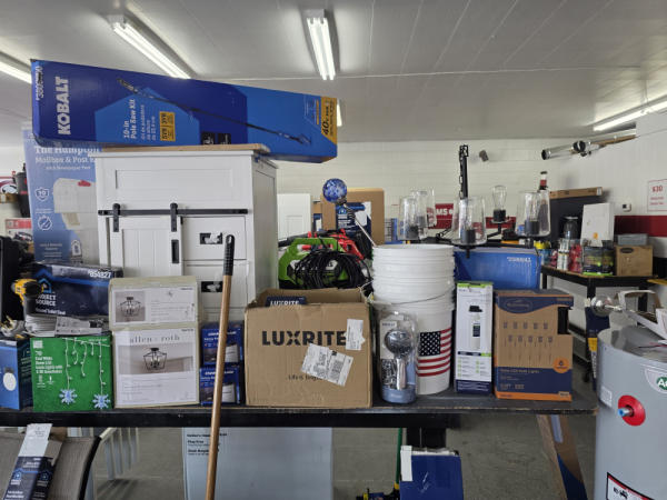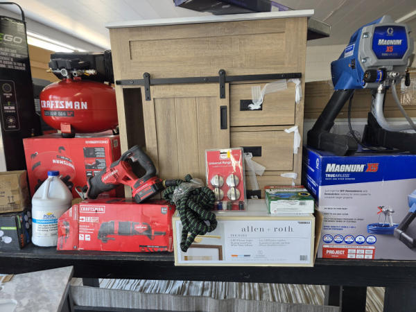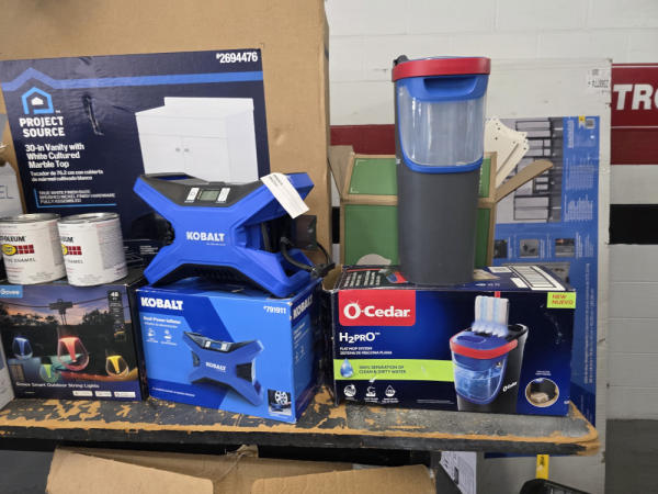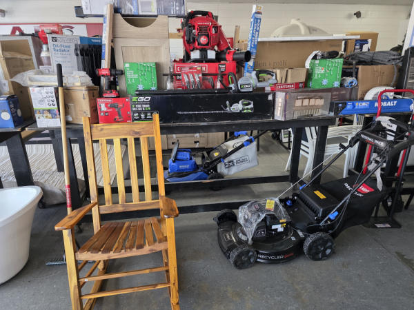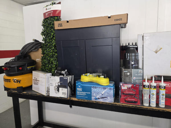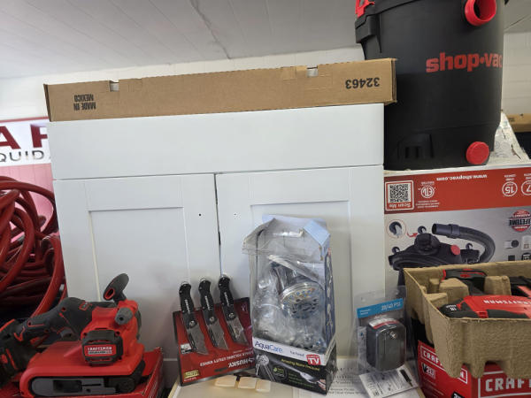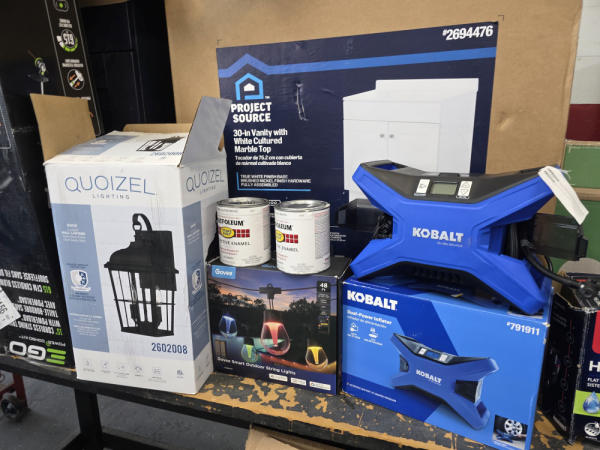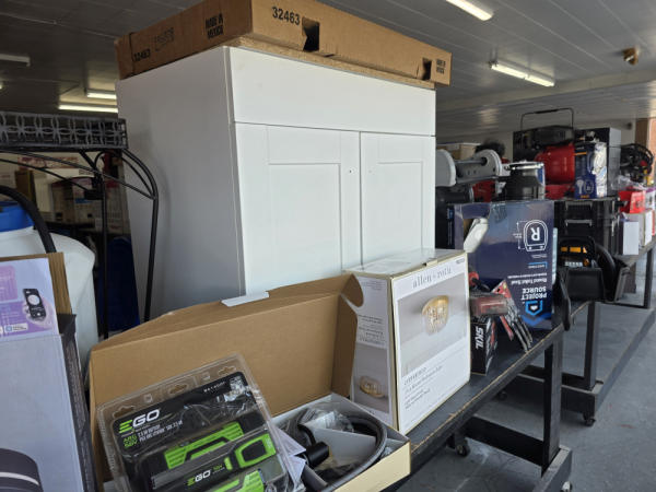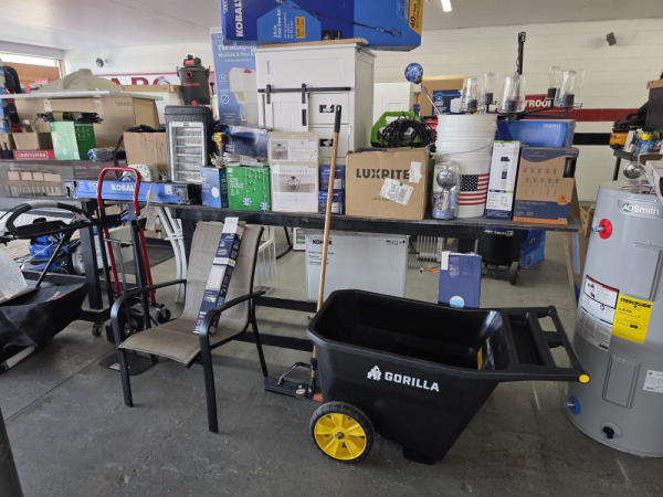 This is a HUGE TRUCKLOAD HOME IMPROVEMENT auction this week! The place is loaded with super nice Home Improvement including $1500 60 inch Solid Wood Vanity, Soaking Tub, TORO Gas Lawn Mower, AO Smith Electric Hot Water Heater, Brand New Toilets, Metal Patio Table, Patio Rubs, all types of Patio Chairs, Rocking Chairs, Gorilla Carts, Wheel Barrels, Gas Backpack Blowers, Gas Heaters, EGO Weedeaters, EGO Blowers, EGO Batteries, All sizes of really nice bathroom vanity cabinets, Pancake Air Compressors, Graco Paint Sprayers, Electric Pressure Washers, Garden Hoses, Garden Reels, Light Fixtures, Heaters, Ceiling Fans, Faucet Sets, Huge Kobalt Metal Garage Cabinets, 26 Gallon Kobalt Air Compressor, Shop Vacs, Security Lights, Kobalt Battery Powered Lawn Mowers, AC Filters and Vents, Gas Chainsaws, Drill Sets, Reciprocating Saws, and tons more stuff!