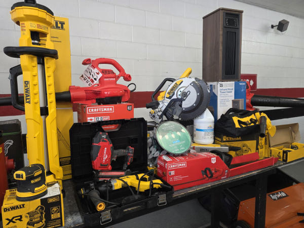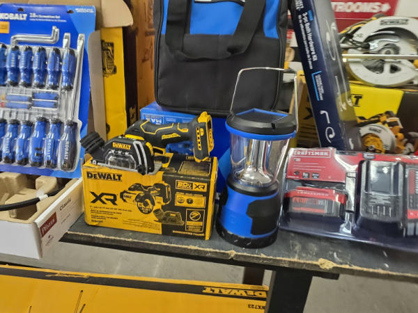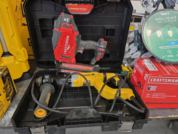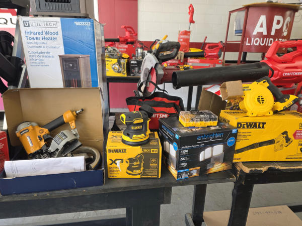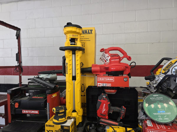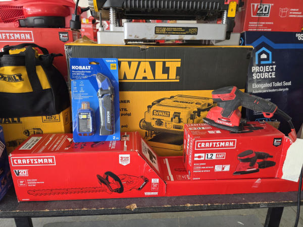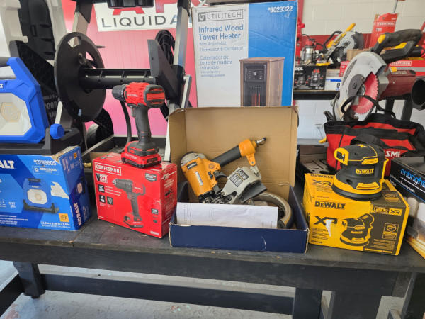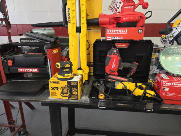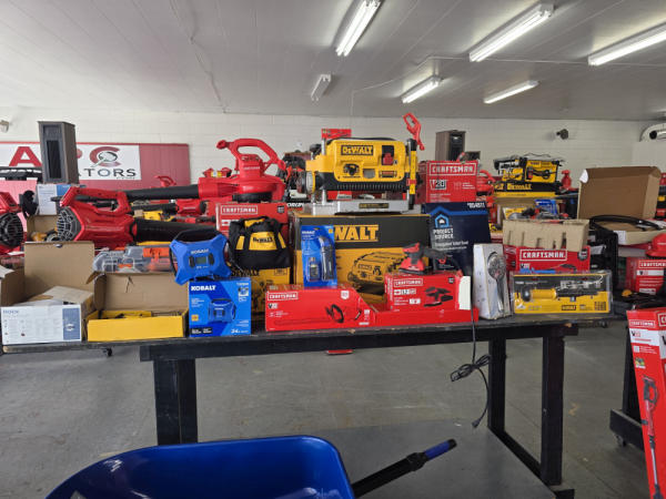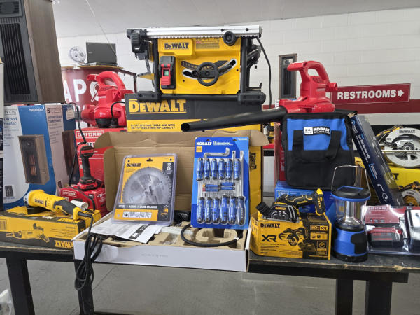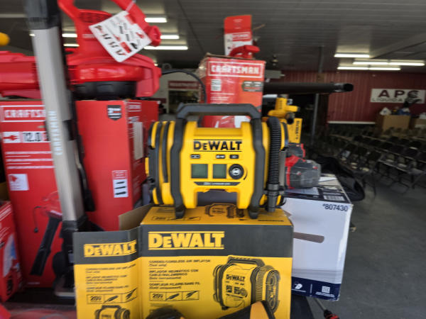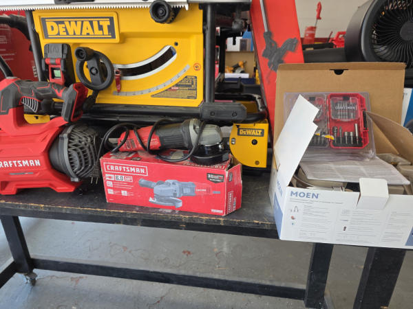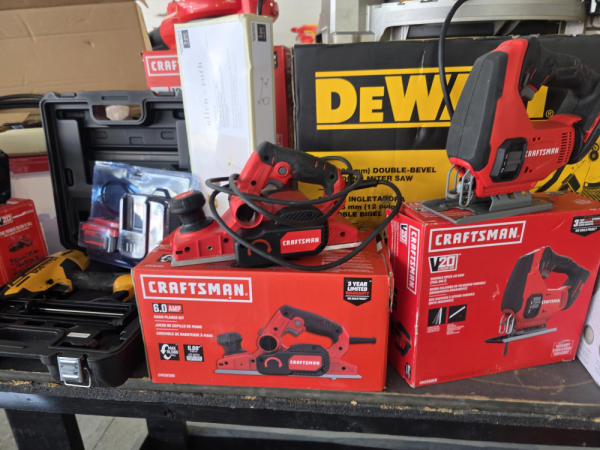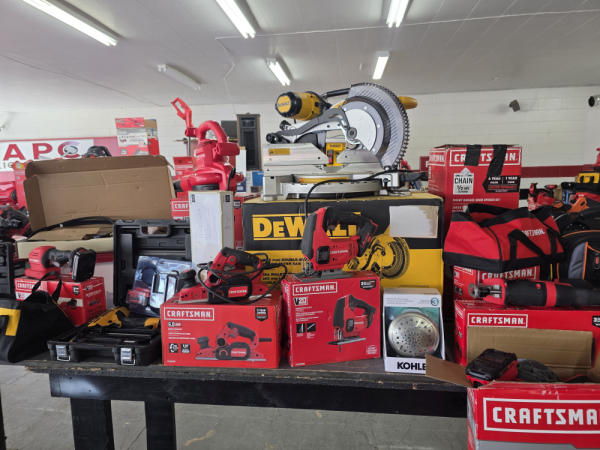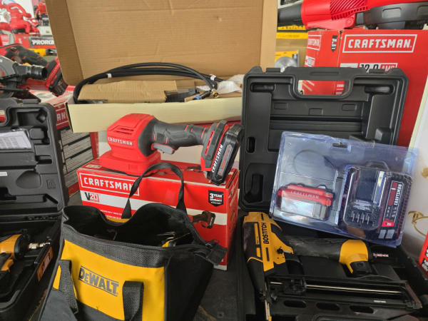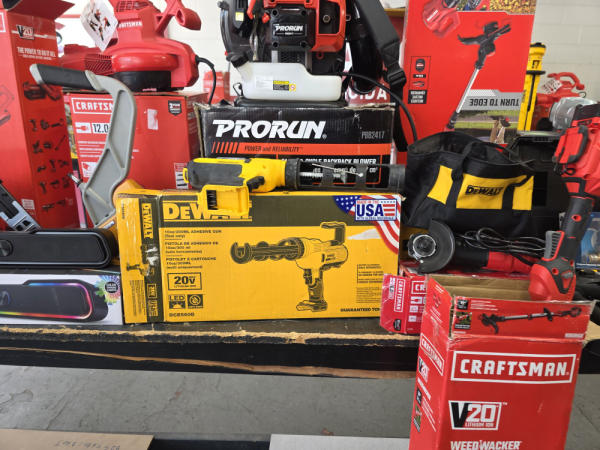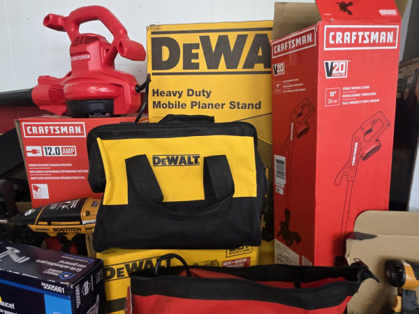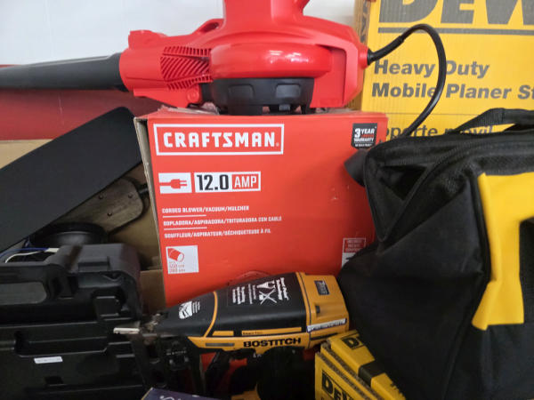 Huge Auction of USA Tools including Dewalt, Craftsman, Kobalt, Bostitch, Agrifab, Black N Decker, and more! Air Compressors, Compound Miter Saws, 20v 12inch Sliding Dewalt Miter Saws, Dewalt Planers, Craftsman Planers, Metabo Nail Guns, Dewalt Table Saws, Kobalt Wheel Barrel, Klein Bags, Hose Reels, Weedeater, Chainsaws, Blowers, Hedge Trimmers, Backpack Blowers, Nail Guns, Cordless Caulk Guns, Batter Powered Pruners, Hammer Drill Sets, Rotarty Hammer Drills, All types of Cordless Dewalt Tools including drill sets, blower sets, deck guns, oscillating tools, reciprocating saws, Dual Fuel Wall Heaters, Shop Heaters, Ceiling Fans, Shop Vacs, Buddy Heaters, Circular Saw Blades, Circular Saws, Faucet Sets, Huge Yard Sweeper, Big Pull Behind Spreader, and tons more stuff! It's a REALLY NICE USA TOOL AUCTION!