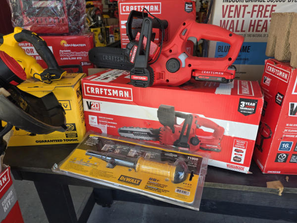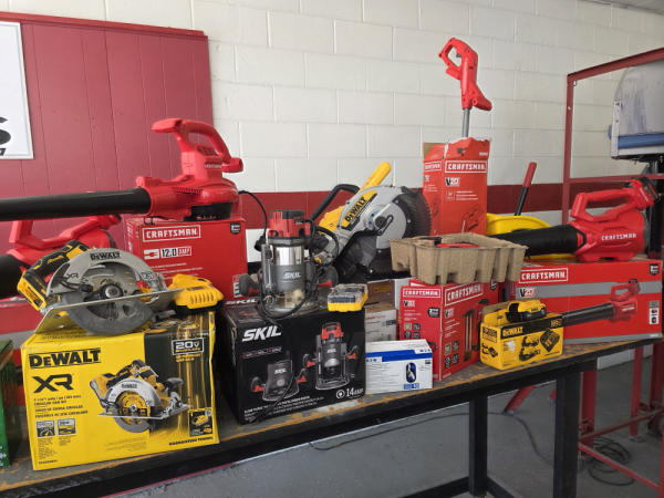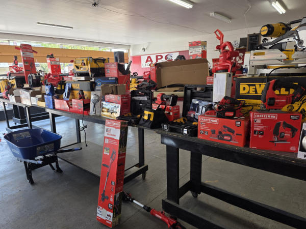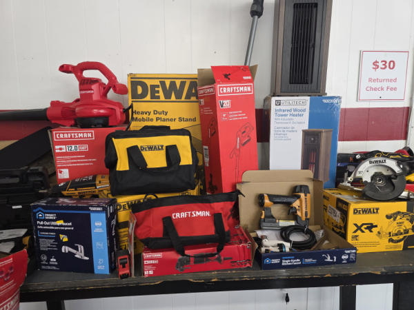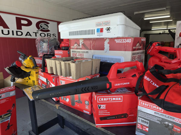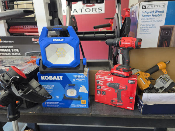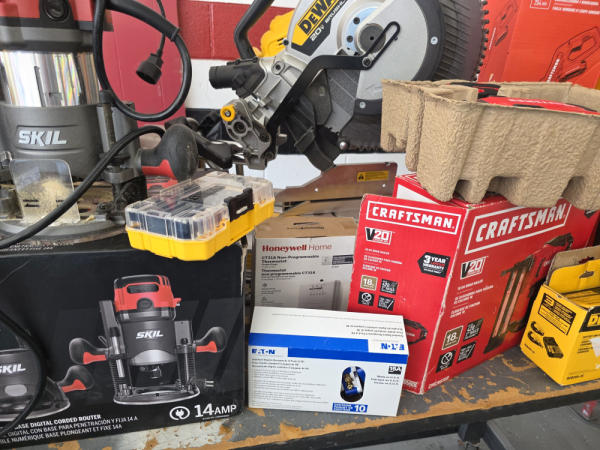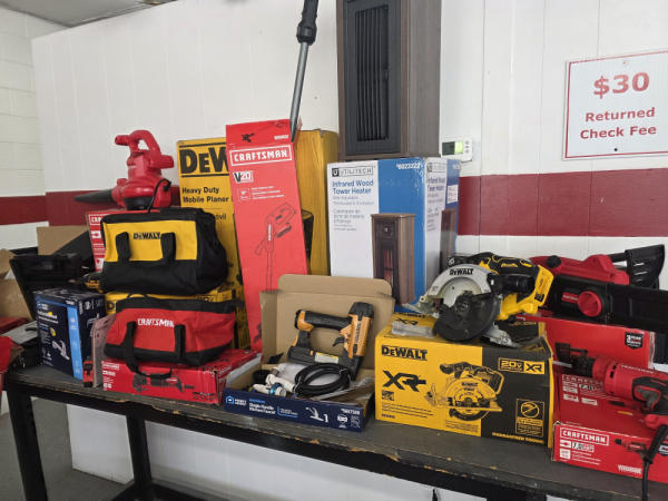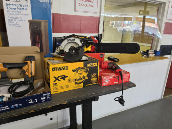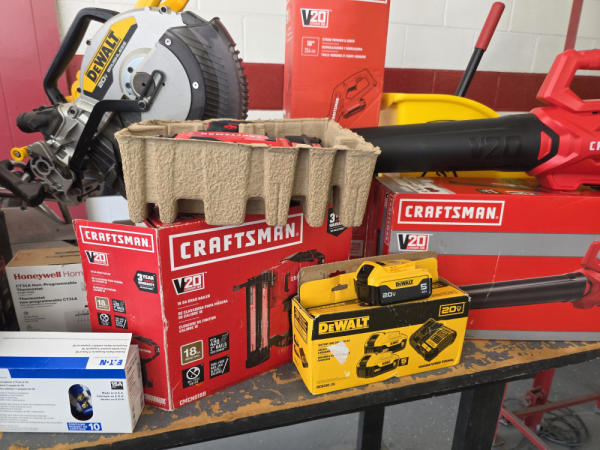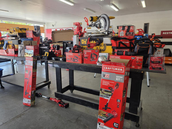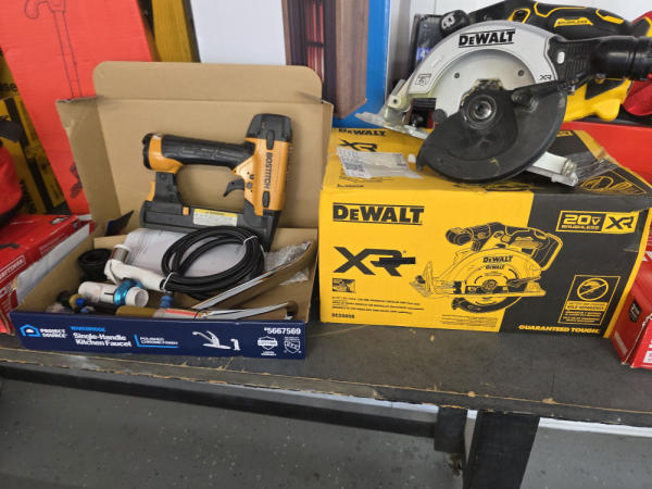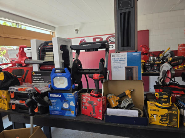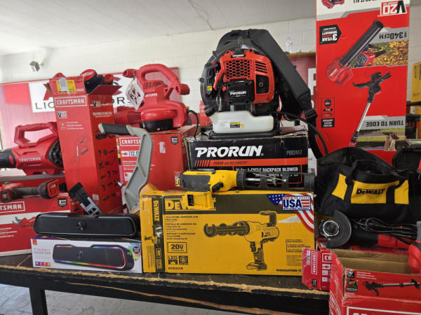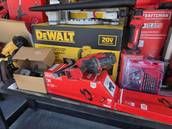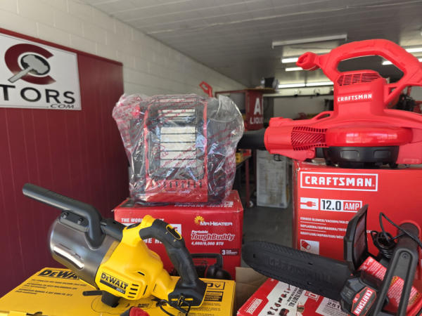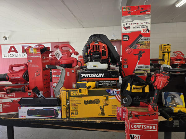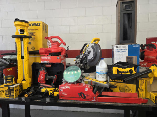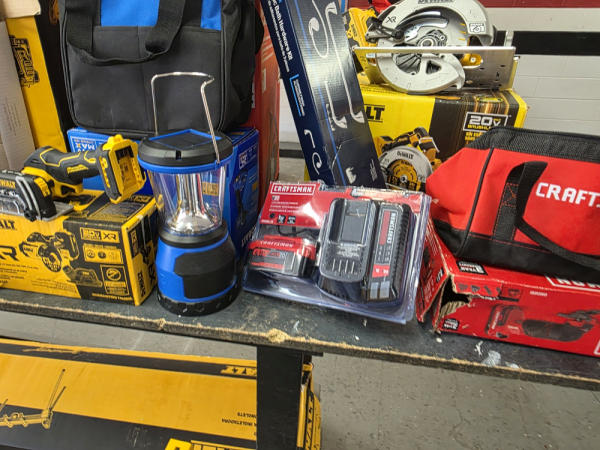 Huge Auction of USA Tools including Dewalt, Craftsman, Kobalt, Bostitch, Agrifab, Black N Decker, and more! Air Compressors, Compound Miter Saws, 20v 12inch Sliding Dewalt Miter Saws, Dewalt Planers, Craftsman Planers, Metabo Nail Guns, Dewalt Table Saws, Kobalt Wheel Barrel, Klein Bags, Hose Reels, Weedeater, Chainsaws, Blowers, Hedge Trimmers, Backpack Blowers, Nail Guns, Cordless Caulk Guns, Batter Powered Pruners, Hammer Drill Sets, Rotarty Hammer Drills, All types of Cordless Dewalt Tools including drill sets, blower sets, deck guns, oscillating tools, reciprocating saws, Dual Fuel Wall Heaters, Shop Heaters, Ceiling Fans, Shop Vacs, Buddy Heaters, Circular Saw Blades, Circular Saws, Faucet Sets, Huge Yard Sweeper, Big Pull Behind Spreader, and tons more stuff! It's a REALLY NICE USA TOOL AUCTION!