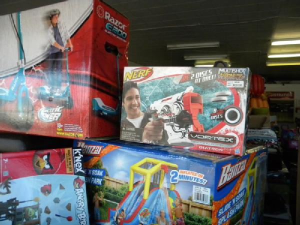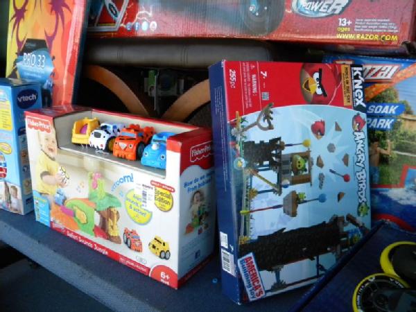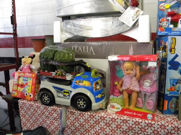 This is a PRISTINE truckload of goods, and nearly everything on the load is brand new, ready for gift giving! We have Xbox Ones, Samsung Soundbars, Nintendo DS games, Printers, Electric Scooters, Huge Inflatable Water Slides, all types of Star Wars Toys, Frozen Toys, Vtech Toys, Baby Dolls, Comforter Sets, Mattress Toppers, Area Rugs, Memory Foam Toppers, Pillows, Throw Pillows, all types of HIGH END Luggage including Chaps, Swiss Army, Tourister, and more, Cookware GALORE (only high end names on this cookware), Steam Vacs, Stainless Trash Cans, Elite Pressure Cookers, Propane Pizza Ovens, New Masterbilt Electric Smokers, Wicker Lamps, Adirondack Chairs, High End Bar Stools including Leather, Swivel, and Saddle, Nice Accent Tables, Solid Wood Benches and Tables, Big Rugs, all types of Hanging Mirrors, Pictures, Boxes, Lamps, Decorations, Pet Steps, Pet Cages, Cushion Seating, Juice Containers, and tons more!