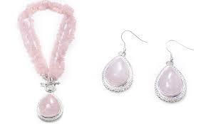 Genuine Rose Quartz 2 pc Necklace And Earring Set