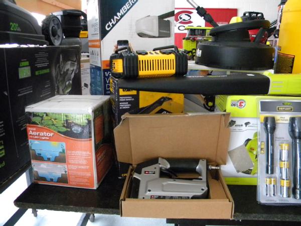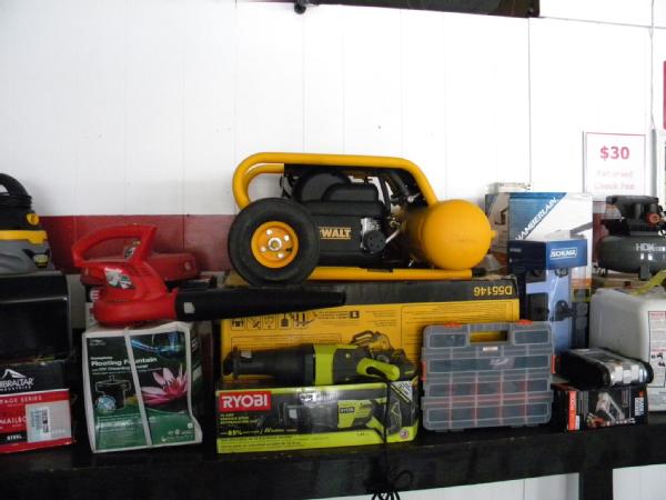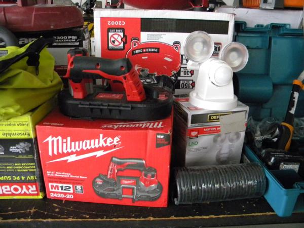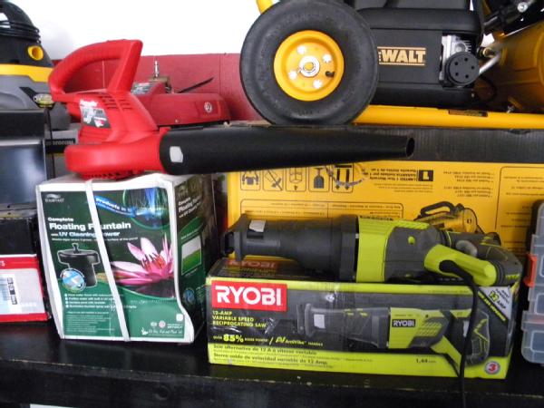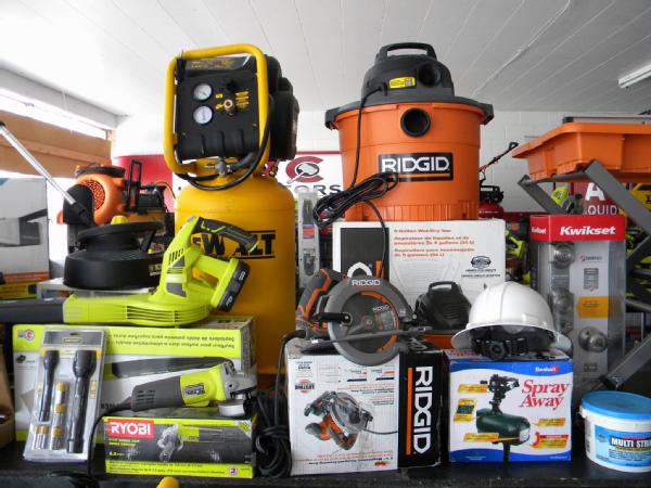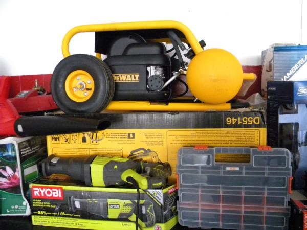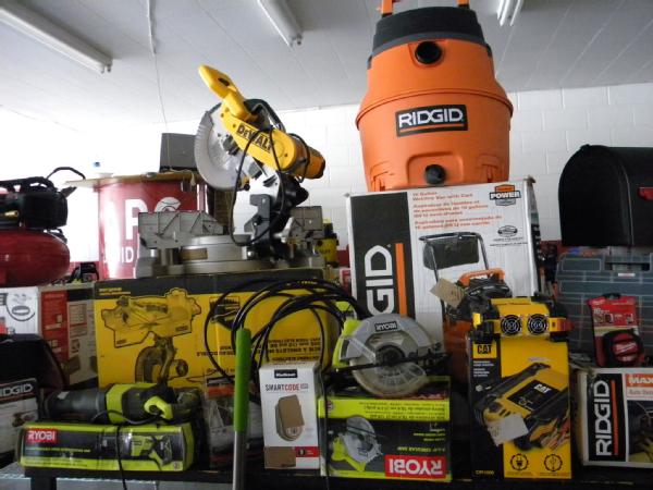One AWESOME Tool Auction this week! Expect to see Dewalt 12 inch Sliding Compound Miter Saw, 10 inch Dewalt Chop Saws, Dewalt Vertical Air Compressors, Dual Tank Dewalt Air Compressors, Husky Tool Boxes, Ridgid Shop Vacs, Stainless Steel Shop Vacs, Dewalt Table Saw, Ridgid Commercial Tile Saws, EGO 56v Lawn Mowers, Black and Decker Lawn Mowers, Wheel Barrels, Porter Cable Pancake Air Compressors, Makita Drill Sets, Ridgid Cordless Drill Sets, Ryobi Cordless Drill Sets, Ridgid Router, Big Socket Sets, Impact Socket Sets, Air Painters, Blue Max Chainsaws, Ryobi Chainsaws, Homelite Chainsaws, Dewalt 20v Lithium Chop Saw, Tankless Hot Water Heaters, Palm Sanders, Recip Saws, Side Grinders, Led Flashlights, Big Attic Ladder Set, Ridgid Contractor Table Saw, Chamberlain Garage Door Openers, Circular Saws, 40v Weedeaters, Cat Power Inverters, Battery Chargers, Mailboxes, Door Lock Sets, Milwaukee Band Saws, LED Motion Lights, Car Vacs, Sprinkler Sets, Pond Fountains, Echo Cordless Chainsaws, Echo Cordless Weedeater, Hedge Trimmers, Hammer Drills, and tons more! No Junk or wasted space on this sale!