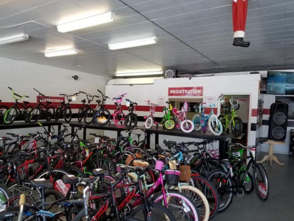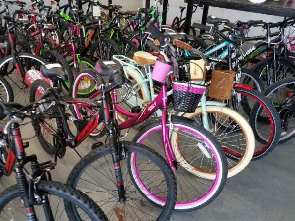 A huge truckload of brand new bicycles came in, so we are having BIKE WEEK this week at the auction. Honestly, we have bicycles everywhere. From kid's bikes with training wheels to Huge Beach Cruisers with huge wheels and comfort seats. We have for boys, girls, men, women, and even professional bikers. We will sell bike and bike until they are all gone. We have assembled each and every bike for you already. This is the perfect auction for your Christmas Shopping!