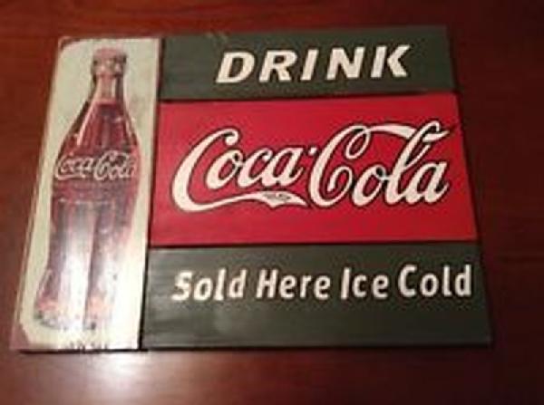 Nice wood Coca-Cola sign that measures 121/2" in height and 16" across. This comes with a hook on the back for easy hanging and displays very well.