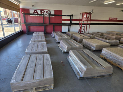Please bring your truck and trailer, as we will have the forklift available to help load the pallets onto your truck or trailer sale night. All flooring has the same locking mechanism, so even different colors will lock together.