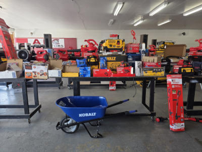 Huge Auction of USA Tools including Dewalt, Craftsman, Kobalt, Bostitch, Agrifab, Black N Decker, and more! Air Compressors, Compound Miter Saws, 20v 12inch Sliding Dewalt Miter Saws, Dewalt Planers, Craftsman Planers, Metabo Nail Guns, Dewalt Table Saws, Kobalt Wheel Barrel, Klein Bags, Hose Reels, Weedeater, Chainsaws, Blowers, Hedge Trimmers, Backpack Blowers, Nail Guns, Cordless Caulk Guns, Batter Powered Pruners, Hammer Drill Sets, Rotarty Hammer Drills, All types of Cordless Dewalt Tools including drill sets, blower sets, deck guns, oscillating tools, reciprocating saws, Dual Fuel Wall Heaters, Shop Heaters, Ceiling Fans, Shop Vacs, Buddy Heaters, Circular Saw Blades, Circular Saws, Faucet Sets, Huge Yard Sweeper, Big Pull Behind Spreader, and tons more stuff! It's a REALLY NICE USA TOOL AUCTION!