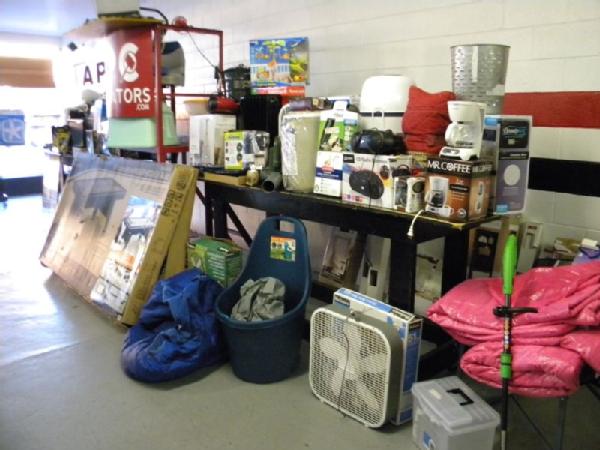Expect to see brand new bicycles, brand new blow up Jumpolene, brand new Pellet Rifles, All types of balls and games, sporting chairs, baseball bags, the super ultimate pressure cooker, several programmable coffee makers, all types of crock pots, all types of heaters including space heaters and oil filled heaters, all types of fans from box fans, to stand fans, to ceiling fans, socket sets and wrenches, bostitch air compressors, bostitch shop vacs, several comforter and sheet sets, storage racks, big doghouse igloos, battery powered 4-wheeler, john deere toy ride on tractor, radio flyer ride ons, scooters, futon sets, all types of bookshelf units, bathroom racks, all types of heating blankets and mattress toppers, memory foam mattress toppers, all types of beauty rest air beds, beauty rest foldable bed, all kinds of electric blowers, electric weedeaters, Stanley Shop Lights, several big juicing machines, camping lanterns, volleyball sets, breadmaking machines, expresso machines, garden hoses, security lights, bathroom lights, plush chairs, all types of luggage and suitcases, large toaster ovens, security safes, backpacks, yoga mats, shop fans, and more! More is being added to the auction until auction day! We plan to work through the weekend as well!