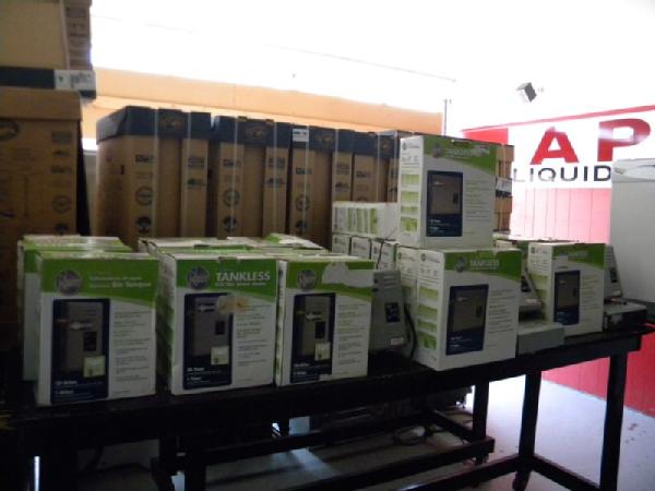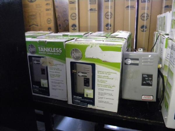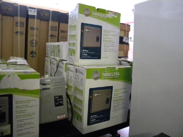 Big Auction full of Major Appliances, Kitchen Cabinets, Tankless Hot Water Heaters, and Brand New Ceiling Fans! This is one of the largest appliance auctions we have held in a long time. Expect to see 2 Big Stainless Stell French Door Regrigerators (Samsung & Maytag), several stackable GE Washer / Dryer Combo Units, Front Load Washer and Dryer, all types of Microwave hood ovens, counter top microwaves, Smooth top Slide in stoves, Coil Burner Slide In Stoves, several regular stoves (nearly 20 stoves total), lots of big refrigerators including top and bottom with ice makers, white side by side refrigerators, black side by side refrigerators, all types of dishwashers, lots of matching sets of stoves, refrigerators, microwaves, and dishwashers. Lots of GE appliance products with matching colors. Plus, we have several sets of brand new kitchen cabinets from HD (at least 3 different color schemes), a huge table full of tankless hot water heaters including electric and gas (nearly 40 of them), and a huge vendor buyback pallet of brand new 52inch nickel ceiling fans by hampton bay. This auction is huge, but will be fast paced. Every single appliance works perfectly, even though some are scratch and dent. Please measure and come early so you can make sure the appliances and cabinets will fit your home or application. Regardless, everything will be sold Monday Night to the highest bidder!