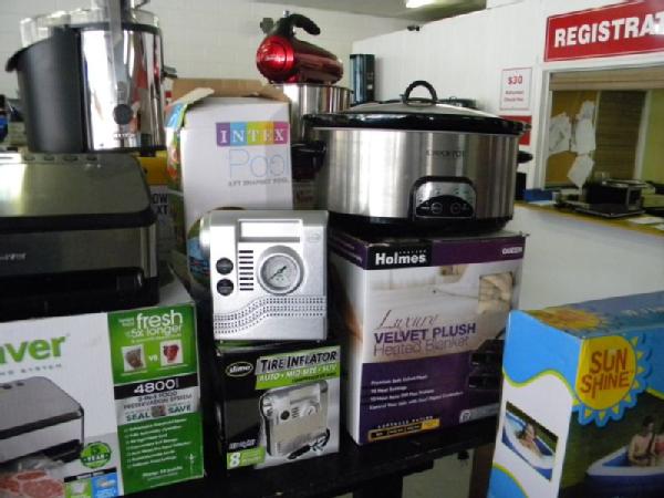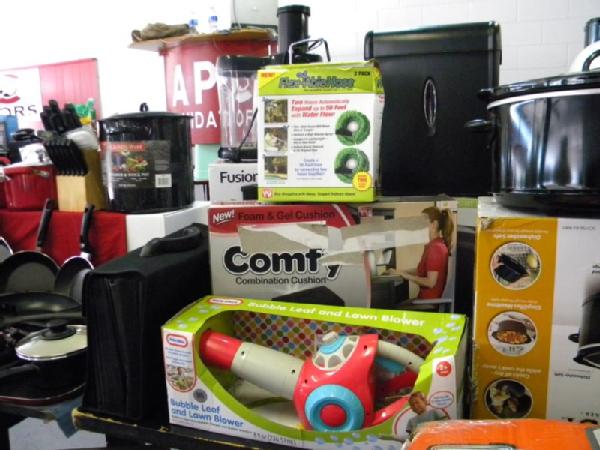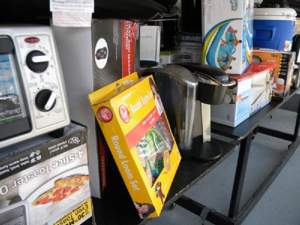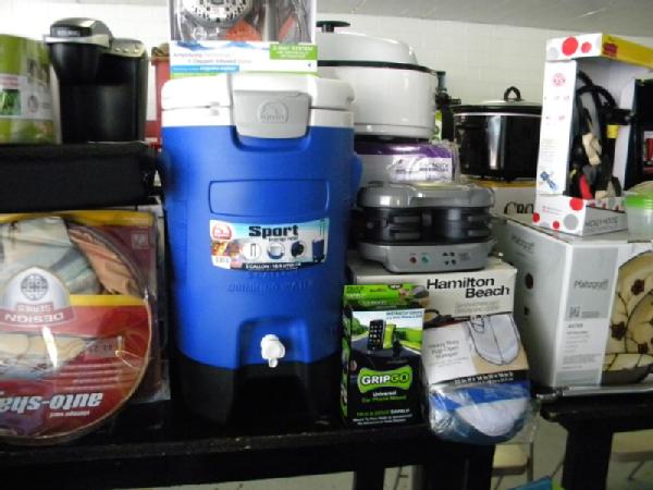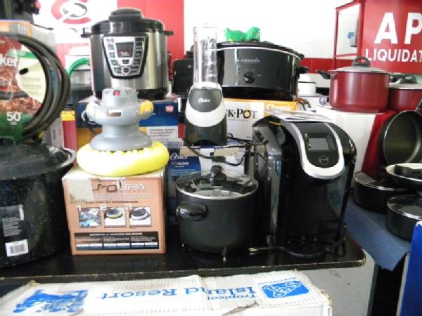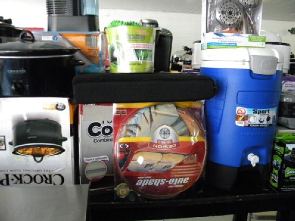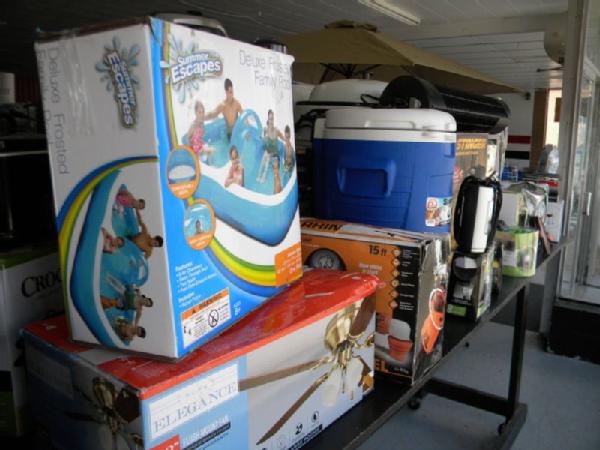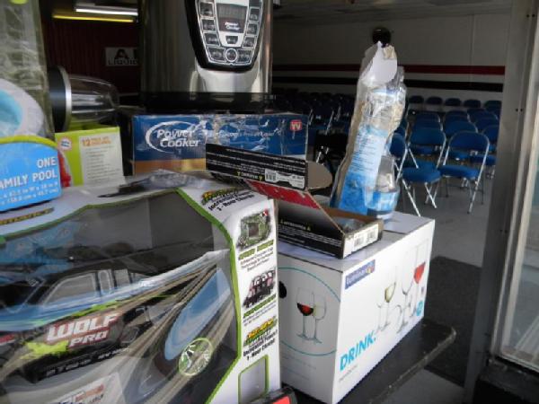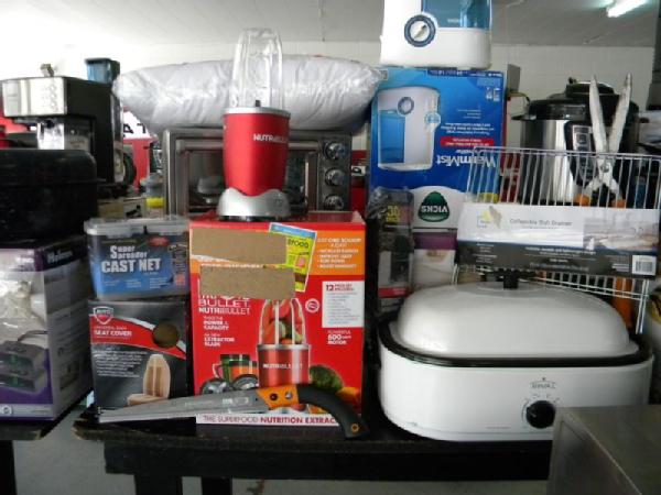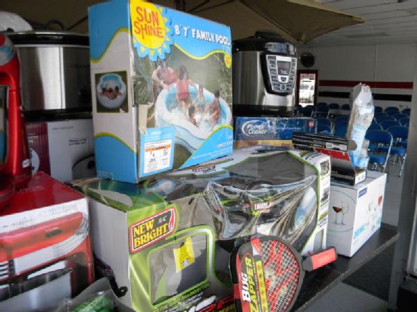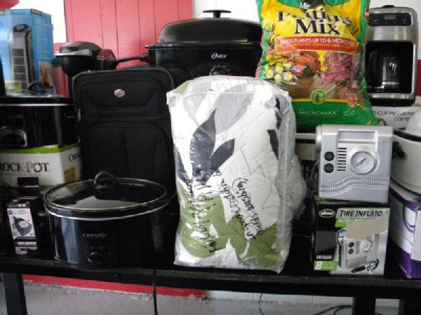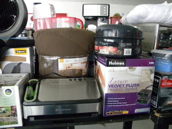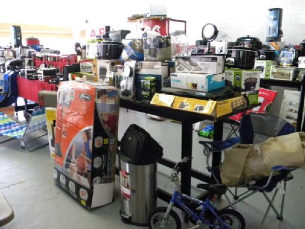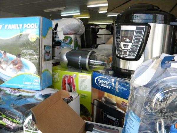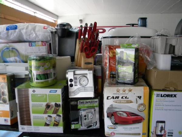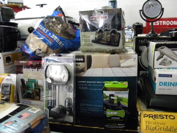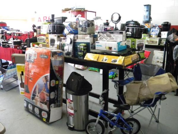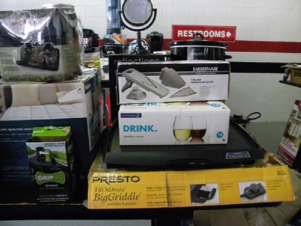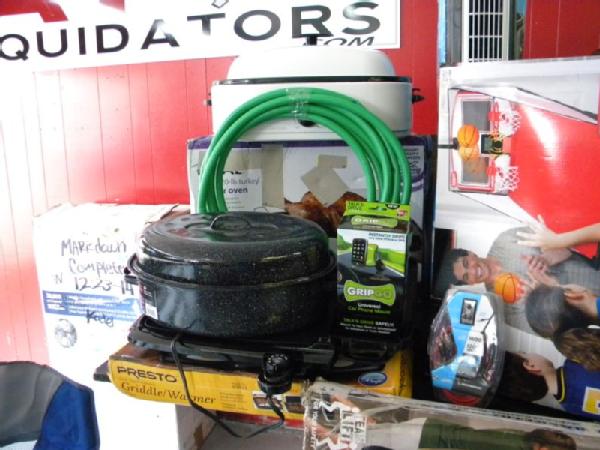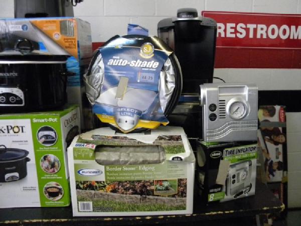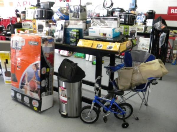 Full Truckload of General Merchandise from WM.com to include Housewares, Patio Furniture, Cookware, Sporting Goods, Furniture, and more! Expect to see bicycles, table and chair sets, folding chairs, camping chairs, pop up tents, stainless gas grills, lots of keurig coffee makers, crock pots, blenders, stand mixers, griddles, air purifiers, air compressors, pressure cookers, roasters, toaster ovens, microwaves, shower systems, inflatable swimming pools, beautiful patio table and chair set ($1299), brand new basketball goal set, stainless trash cans, gaming chairs, knife sets, flatware, glasses, dishes, car covers, induction cookers, flex hoses, bean bags, office chairs, rc cars and trucks, fans, metal fans, kitchen faucets, multimeters, folding chairs, potting soil, comforter sets, pillows, big table full of rugs, kids picnic table, and tons more! More will be added before the auction.